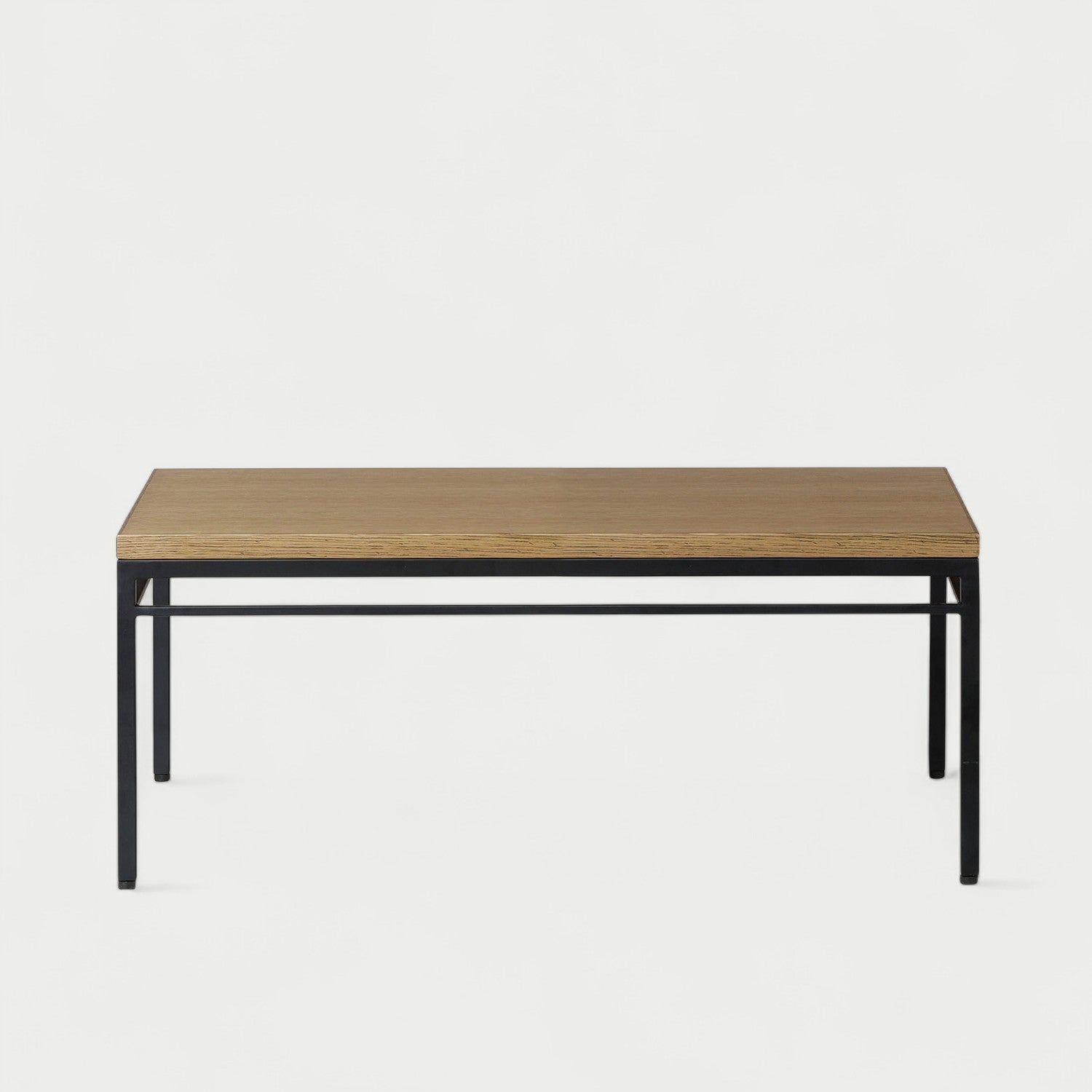 カーラセンターテーブルの天板には、美しい木目が特徴のオーク材の突板を使用しています。温かみのある天然木と、クールなアイアンとの異素材の組み合わせは、シャープになりすぎない絶妙なバランスです。
