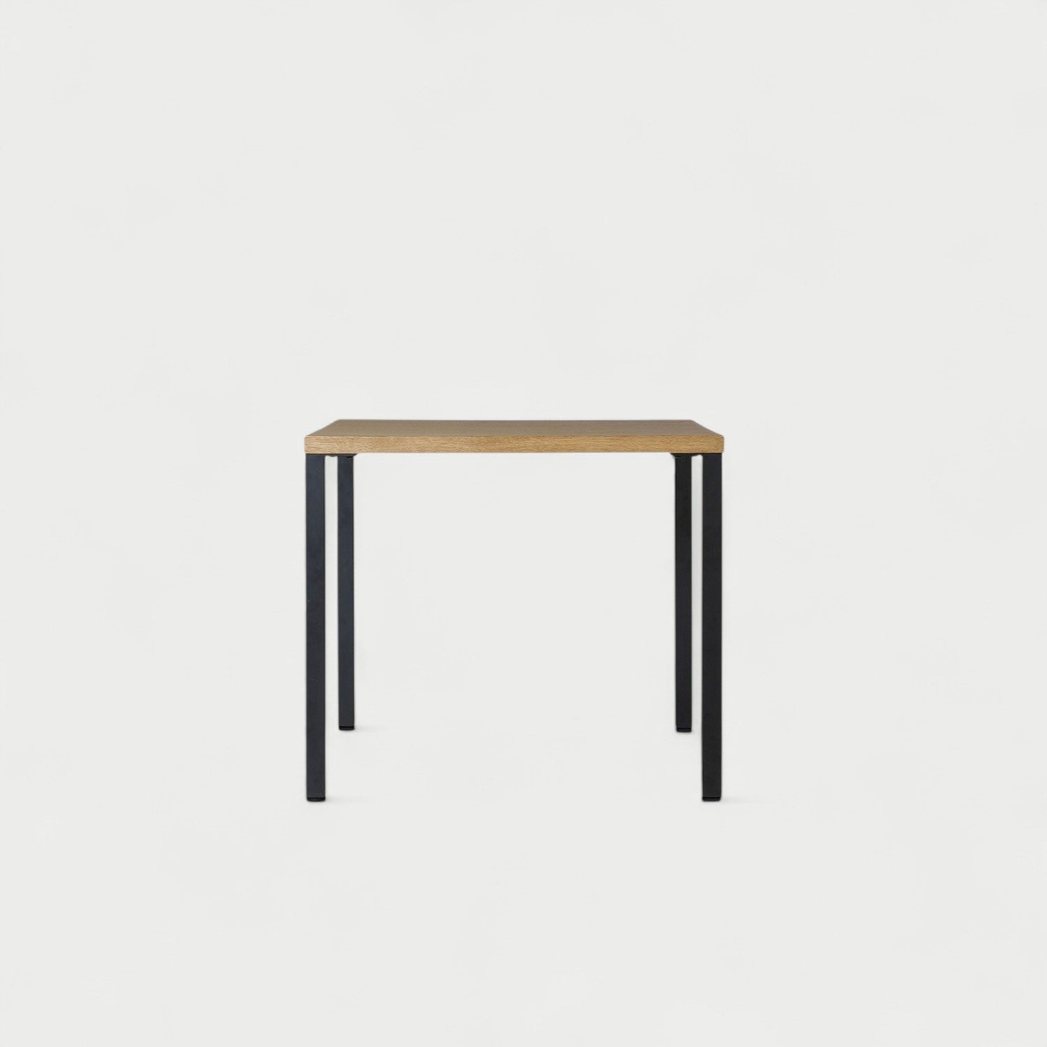 角型のスチール脚がしっかりと天板を支え、安定感は抜群。がたつきにくく、長く使える頼もしさが魅力です。