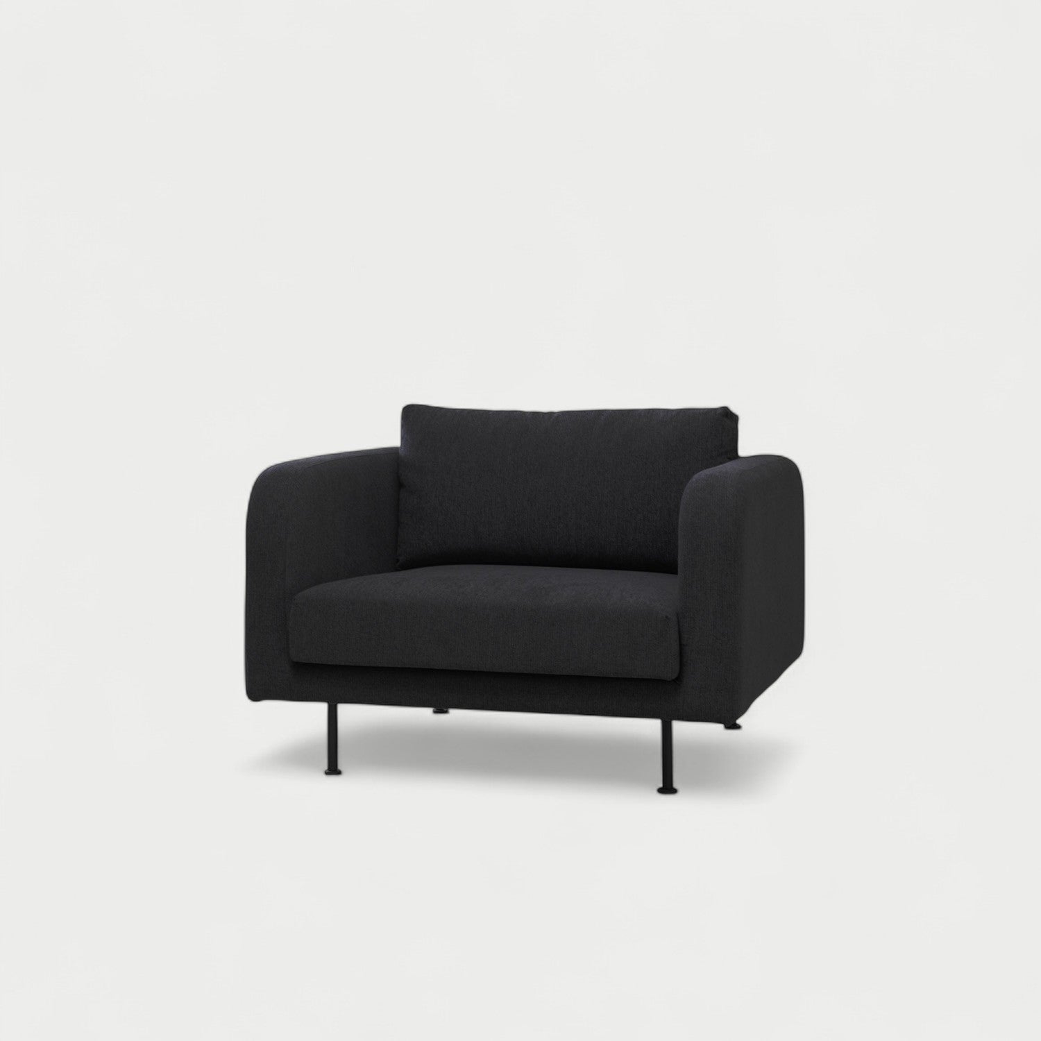 背もたれにしっかりと厚みを持たせつつ、脚や本体はスリムに設計。視界を妨げず、軽やかな印象でどんなお部屋にもすっと馴染むストレスフリーな佇まいです。