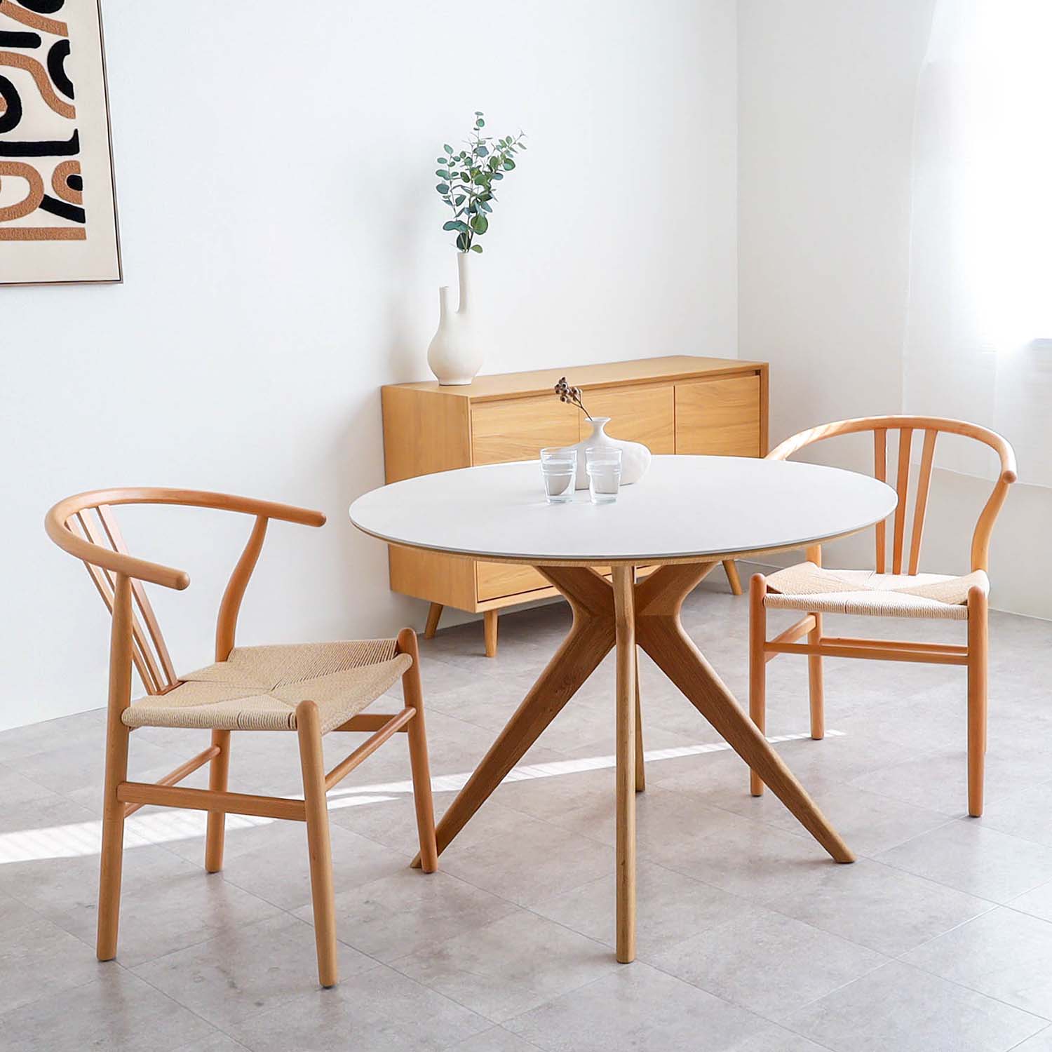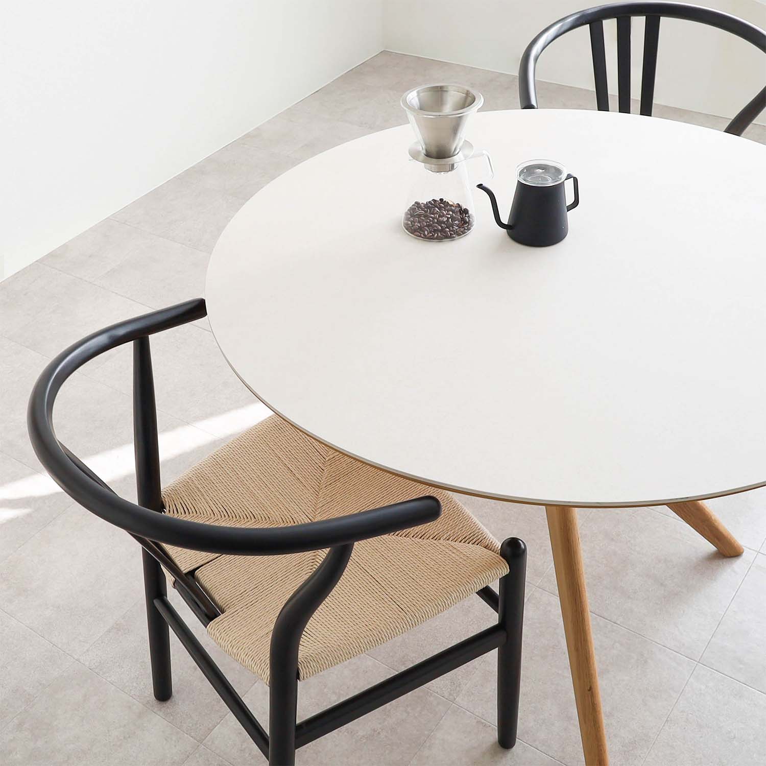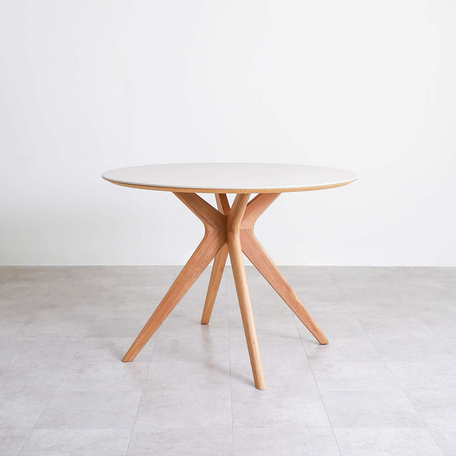 直径100cmのサイズ感は、2〜4人での食事にちょうど良いコンパクトさ。マンションや一人暮らしのお部屋にも取り入れやすい万能サイズです。