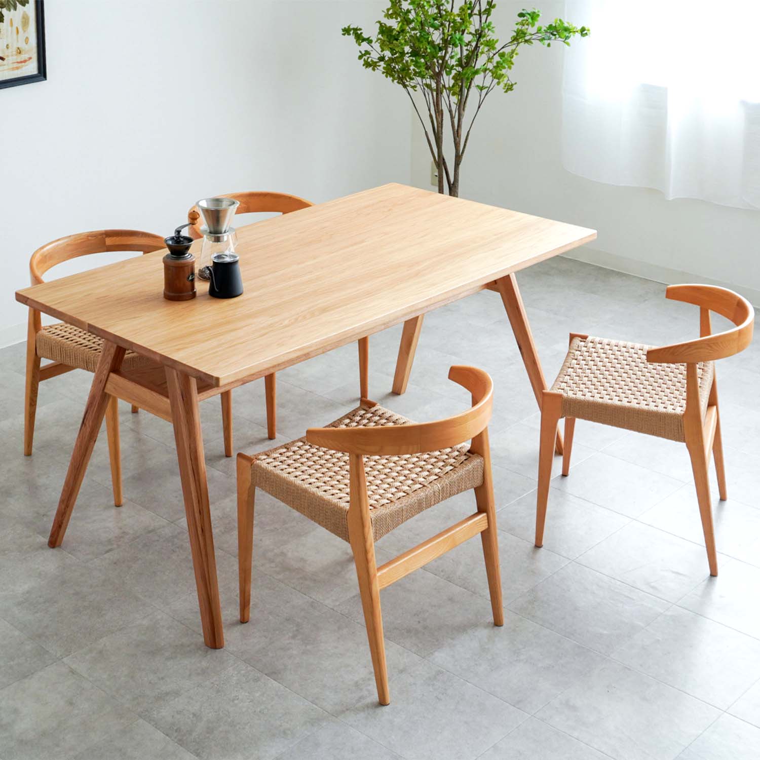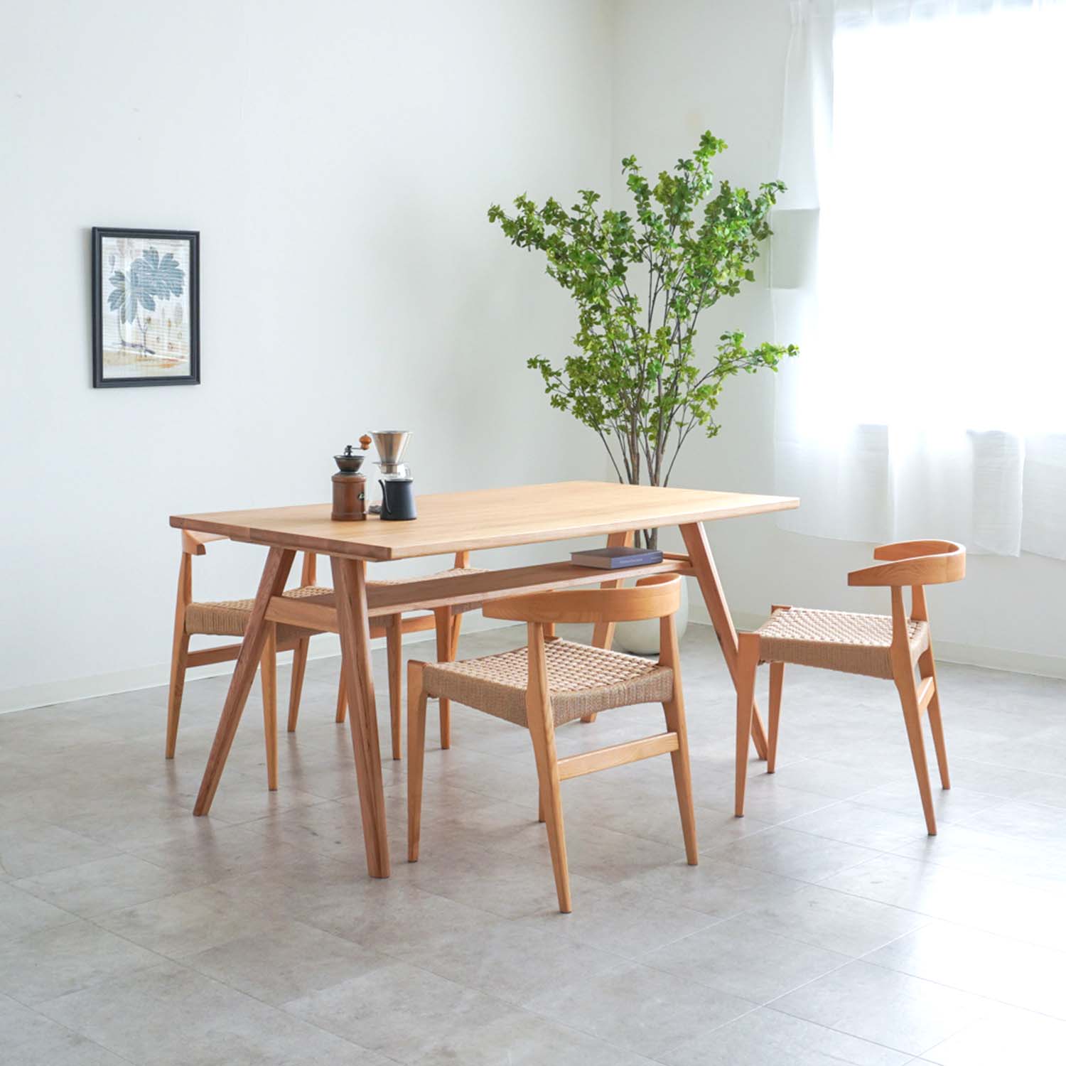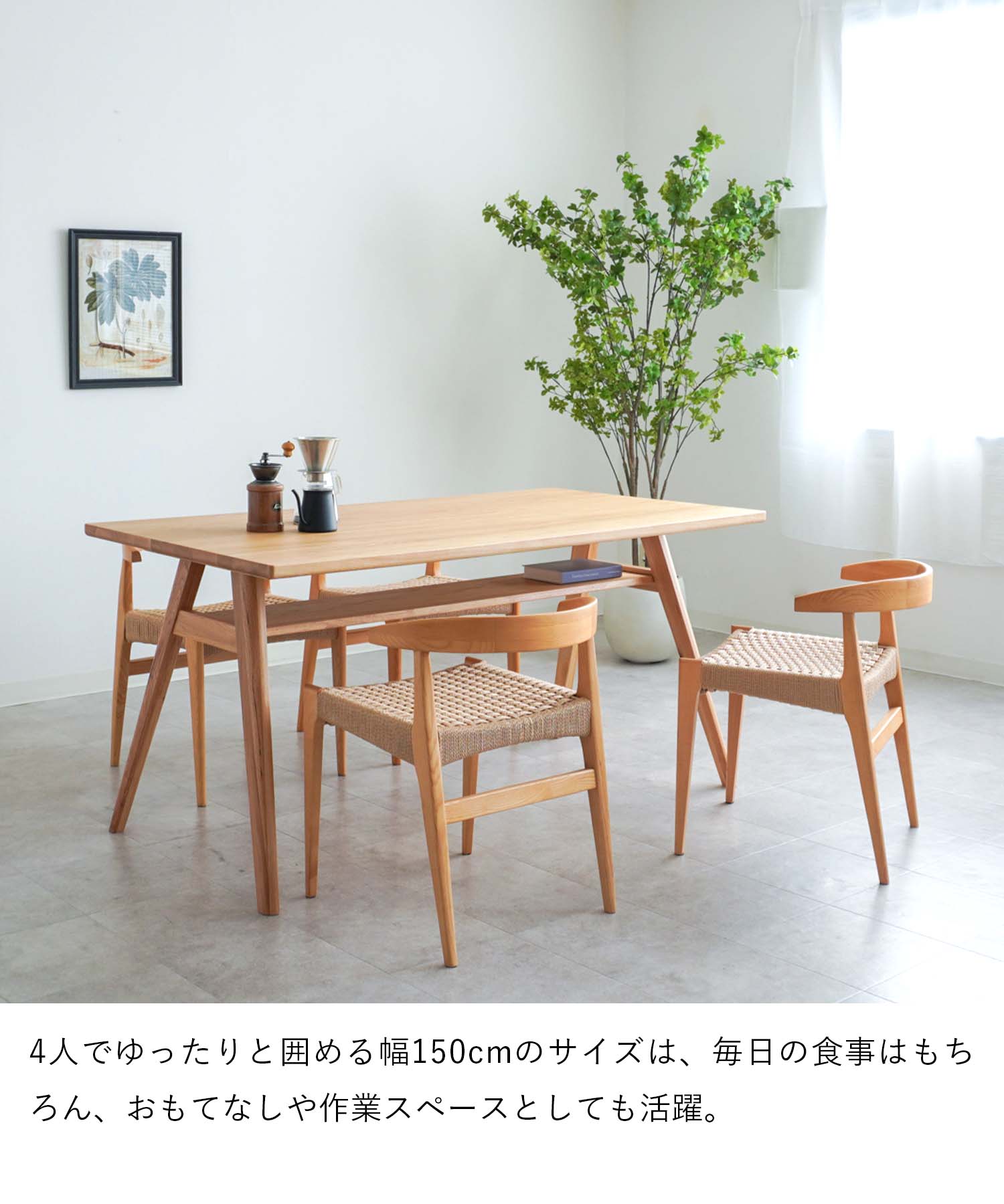 4人でゆったりと囲める幅150cmのサイズは、毎日の食事はもちろん、おもてなしや作業スペースとしても活躍。