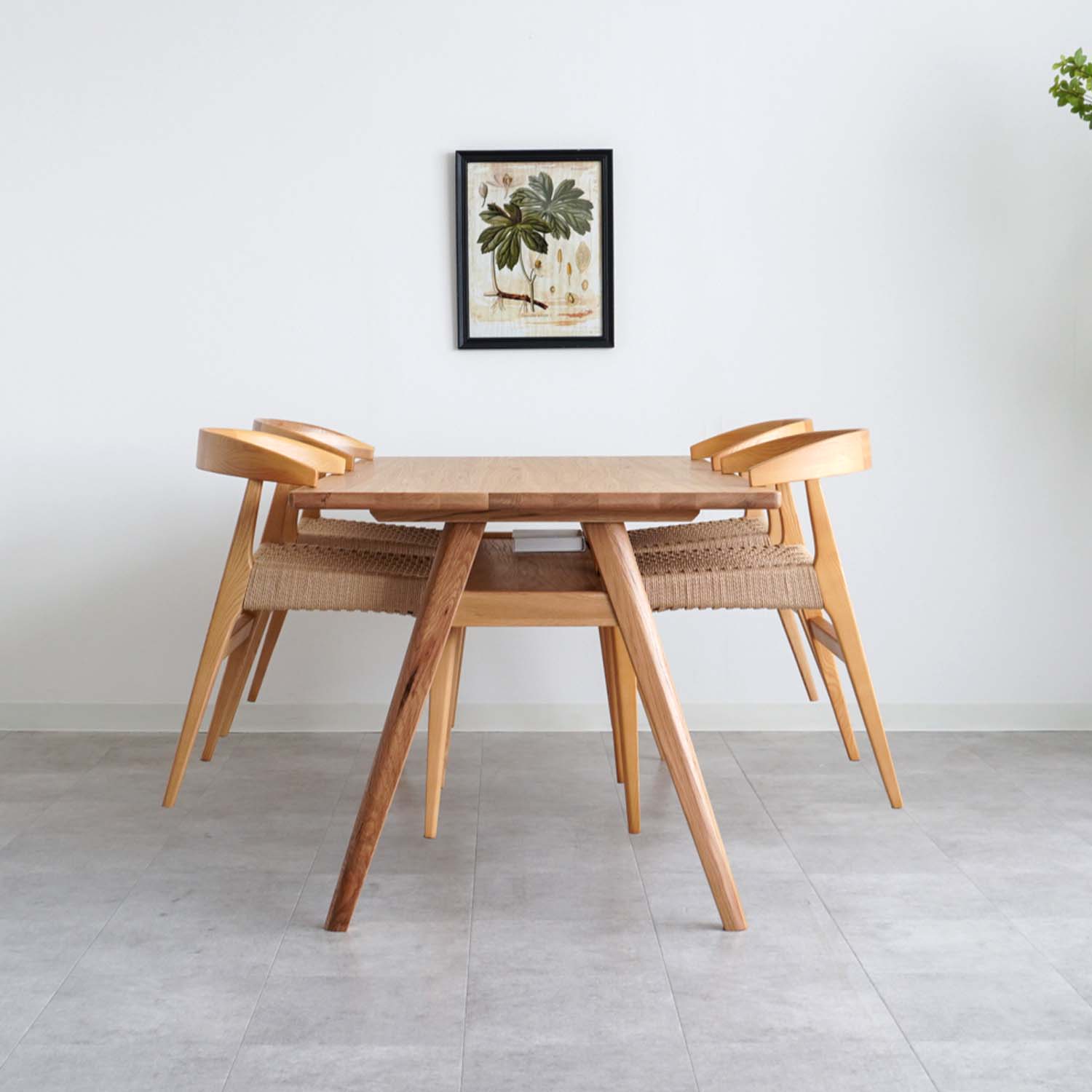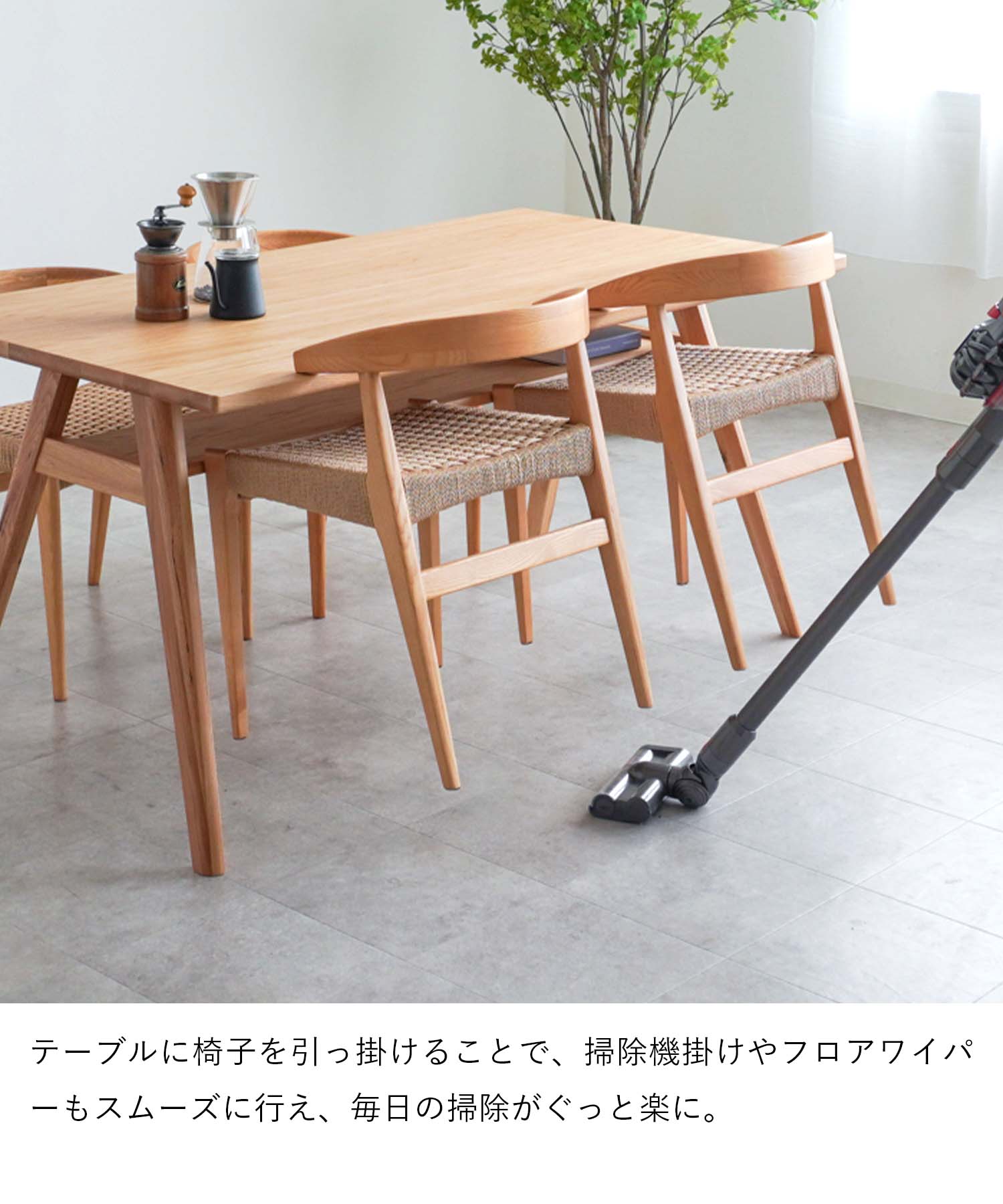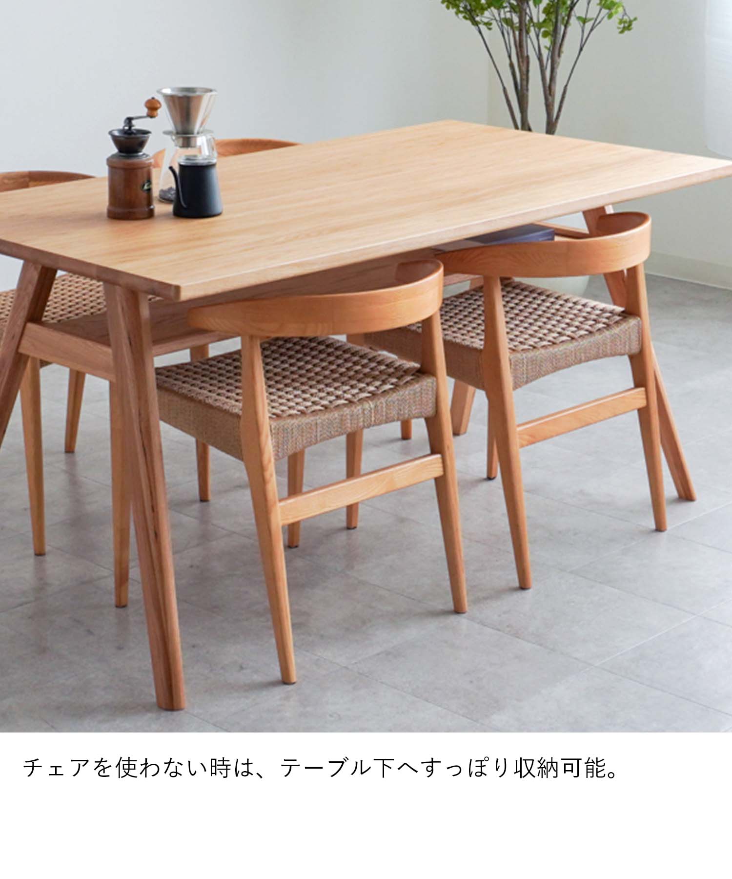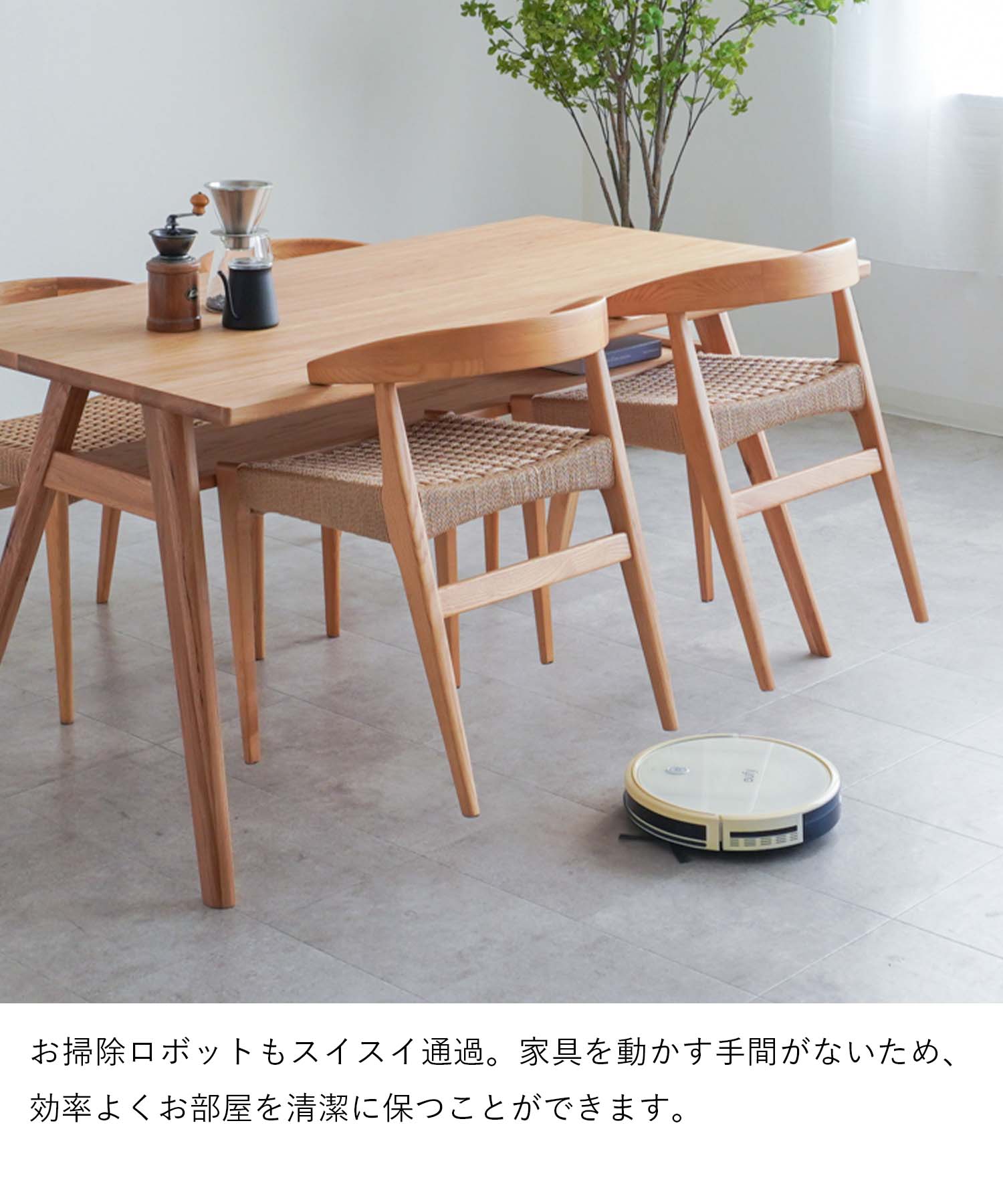 4人でゆったりと囲める幅150cmのサイズは、毎日の食事はもちろん、おもてなしや作業スペースとしても活躍。