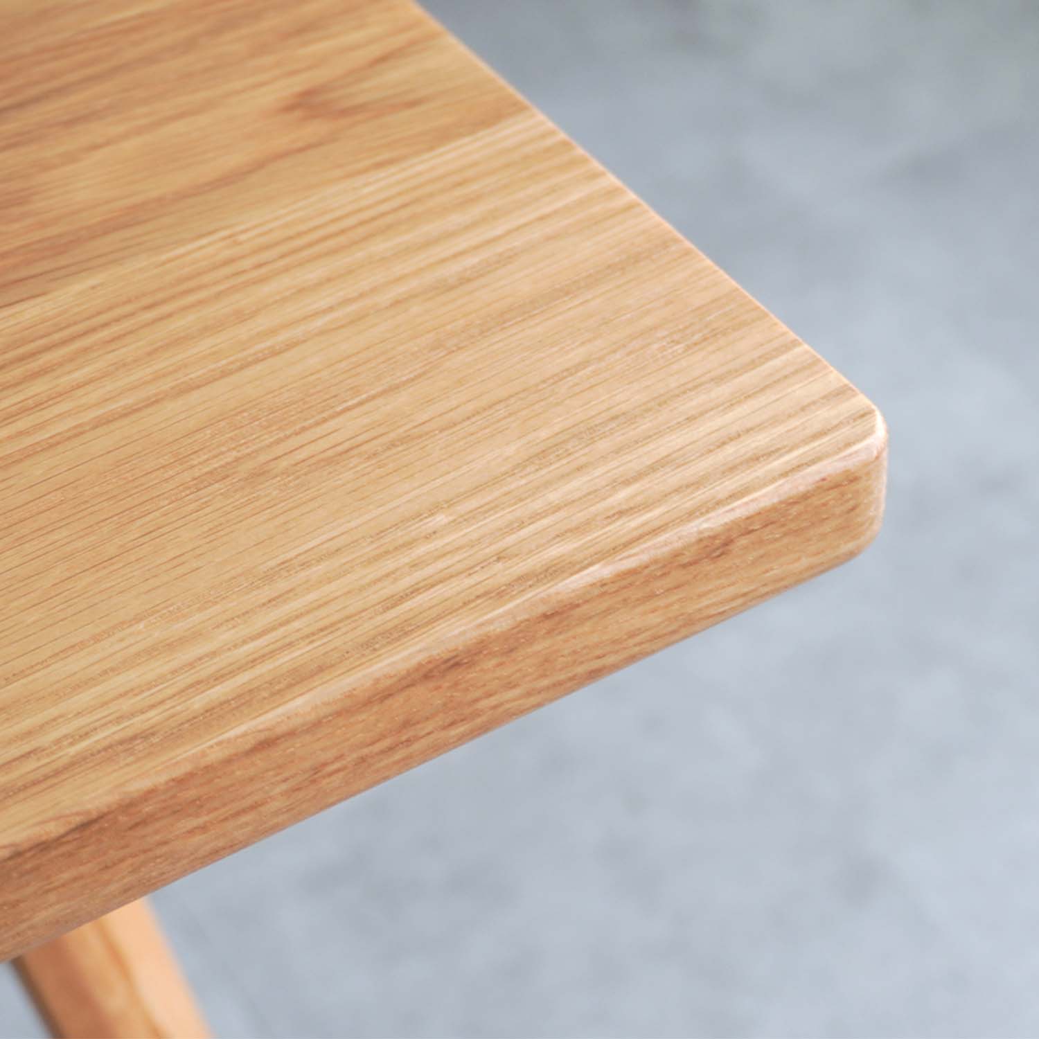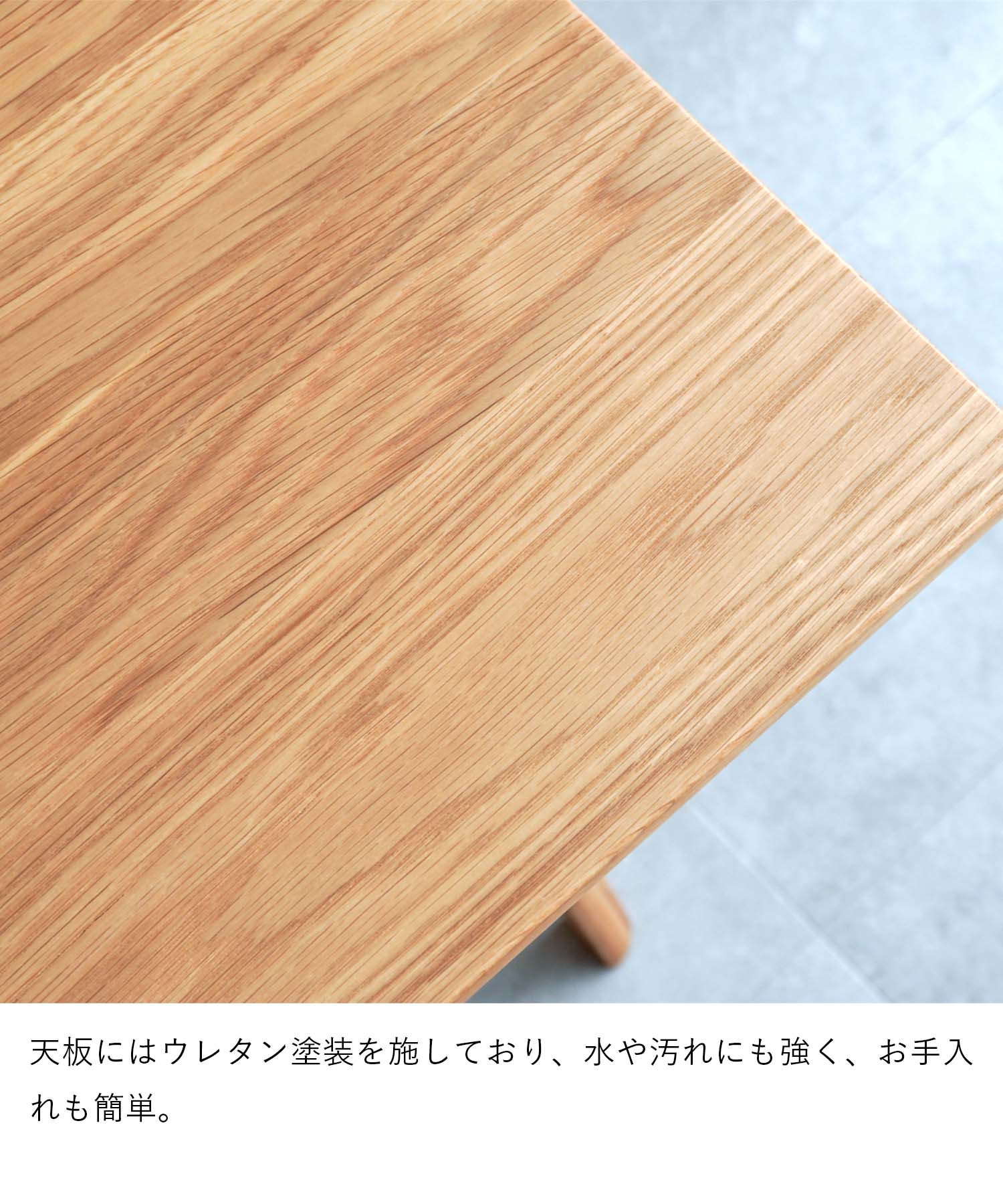 天板にはウレタン塗装を施しており、水や汚れにも強く、お手入れも簡単。脚部にはしっかりとした天然木(オーク材)を採用し、耐久性にも優れています。