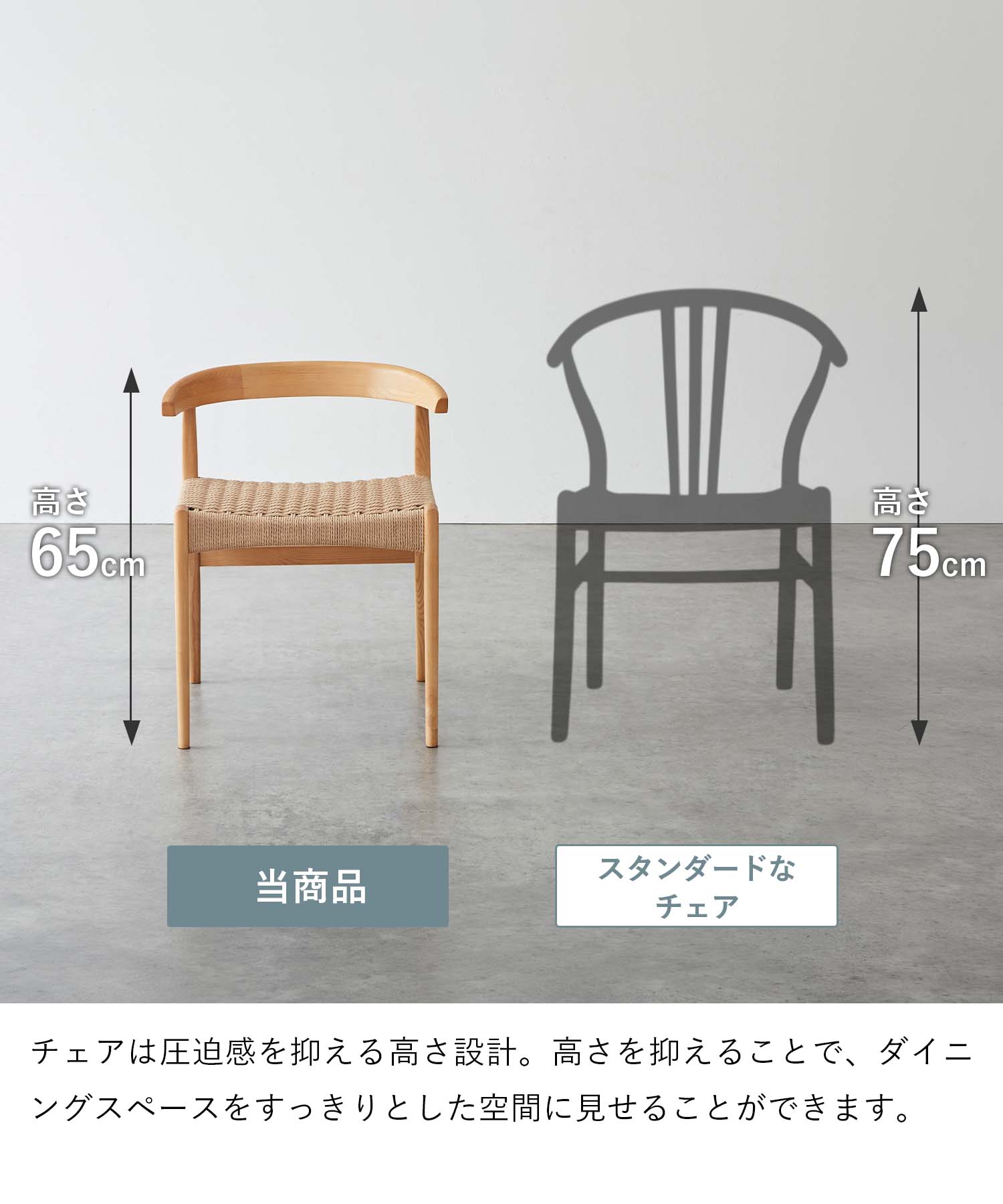 チェアの高さを抑えることで、ダイニングスペースをすっきりとした空間に見せることができます。