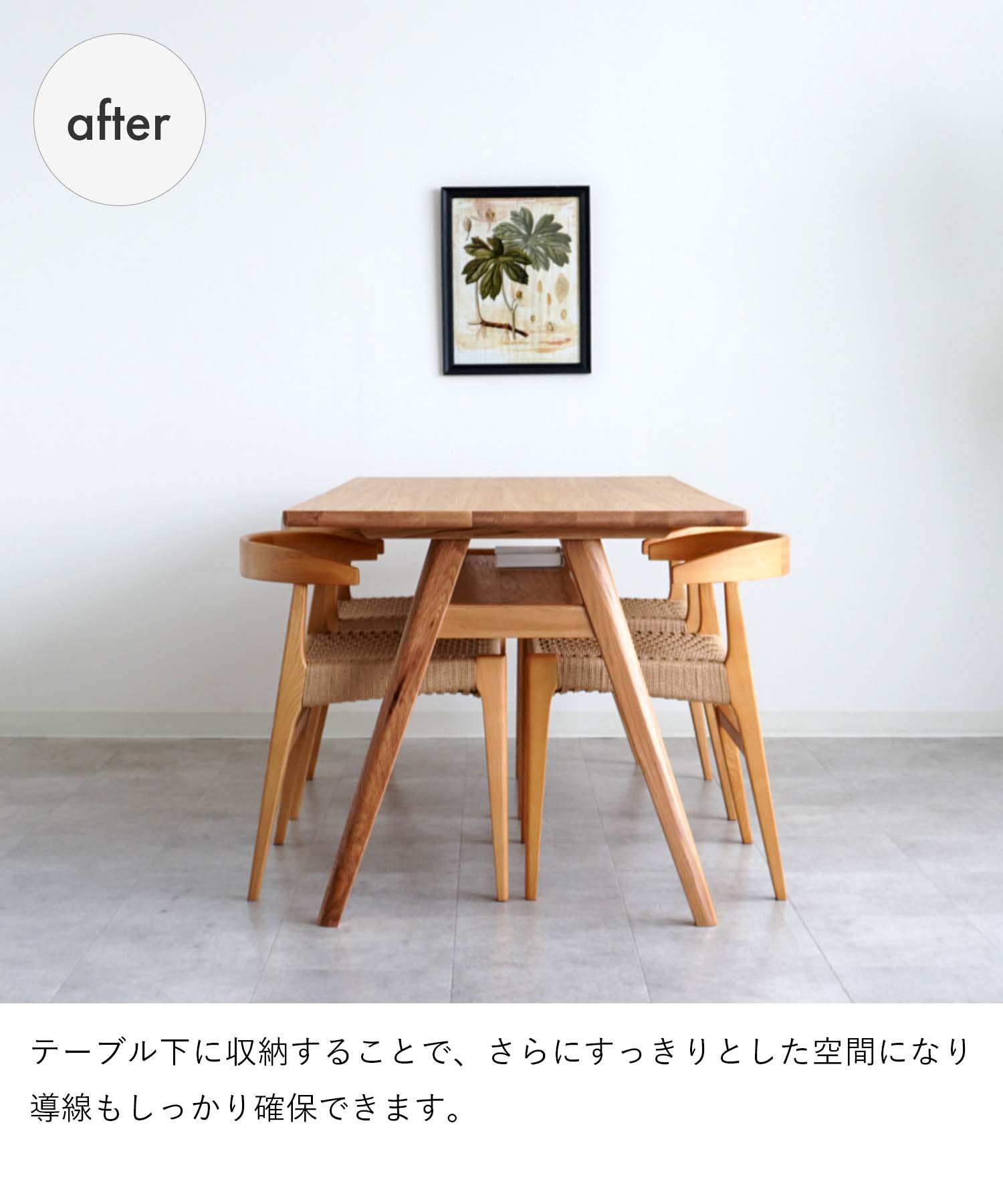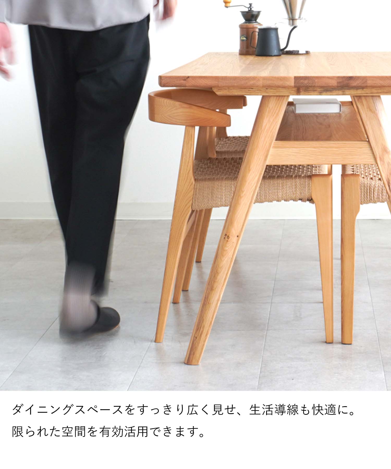 テーブル下に収納することで、さらにすっきりとした空間になり、導線もしっかり確保できます。