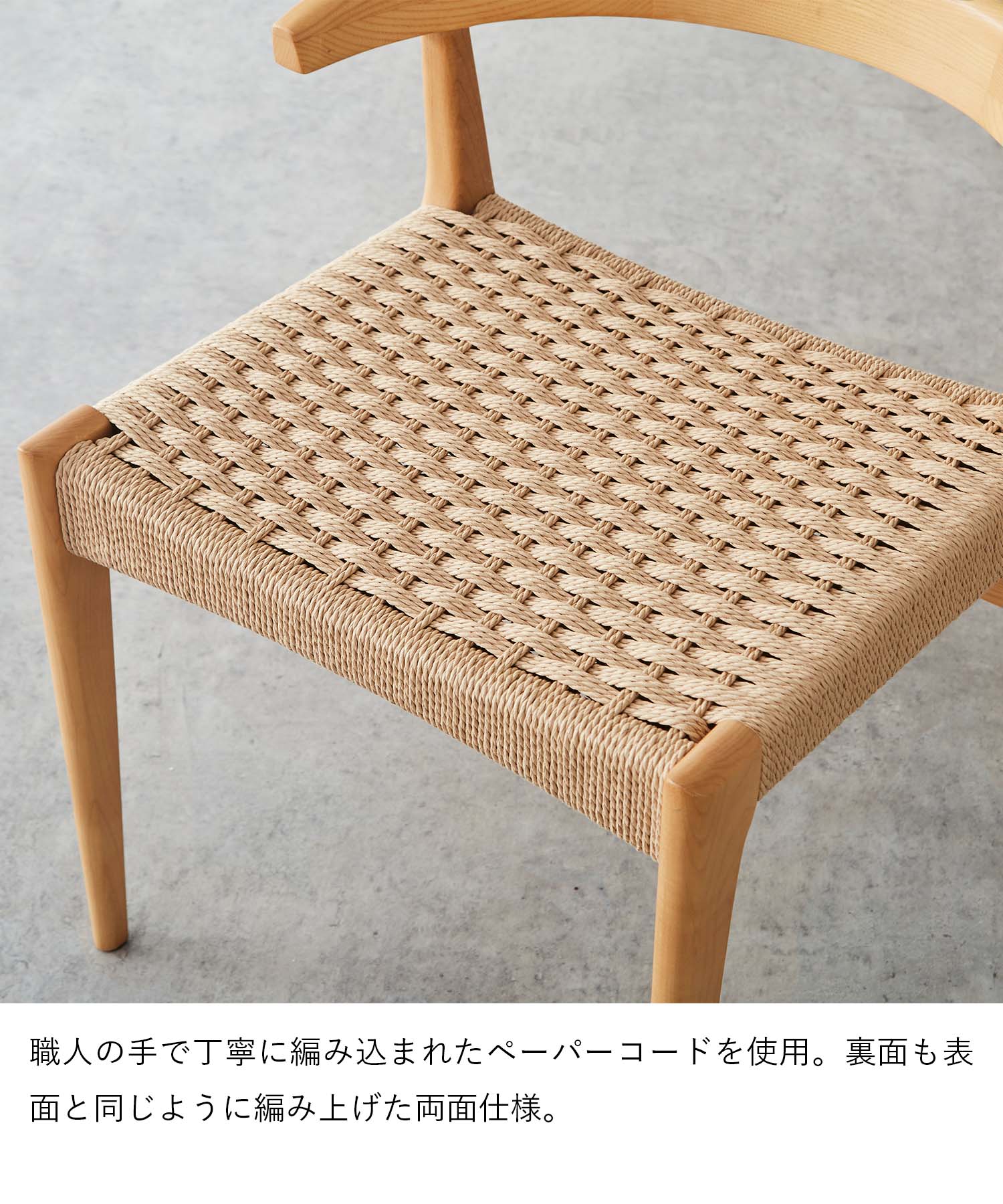 職人の手で丁寧に編み込まれたペーパーコードを使用。裏面も表面と同じように編み上げた両面仕様。