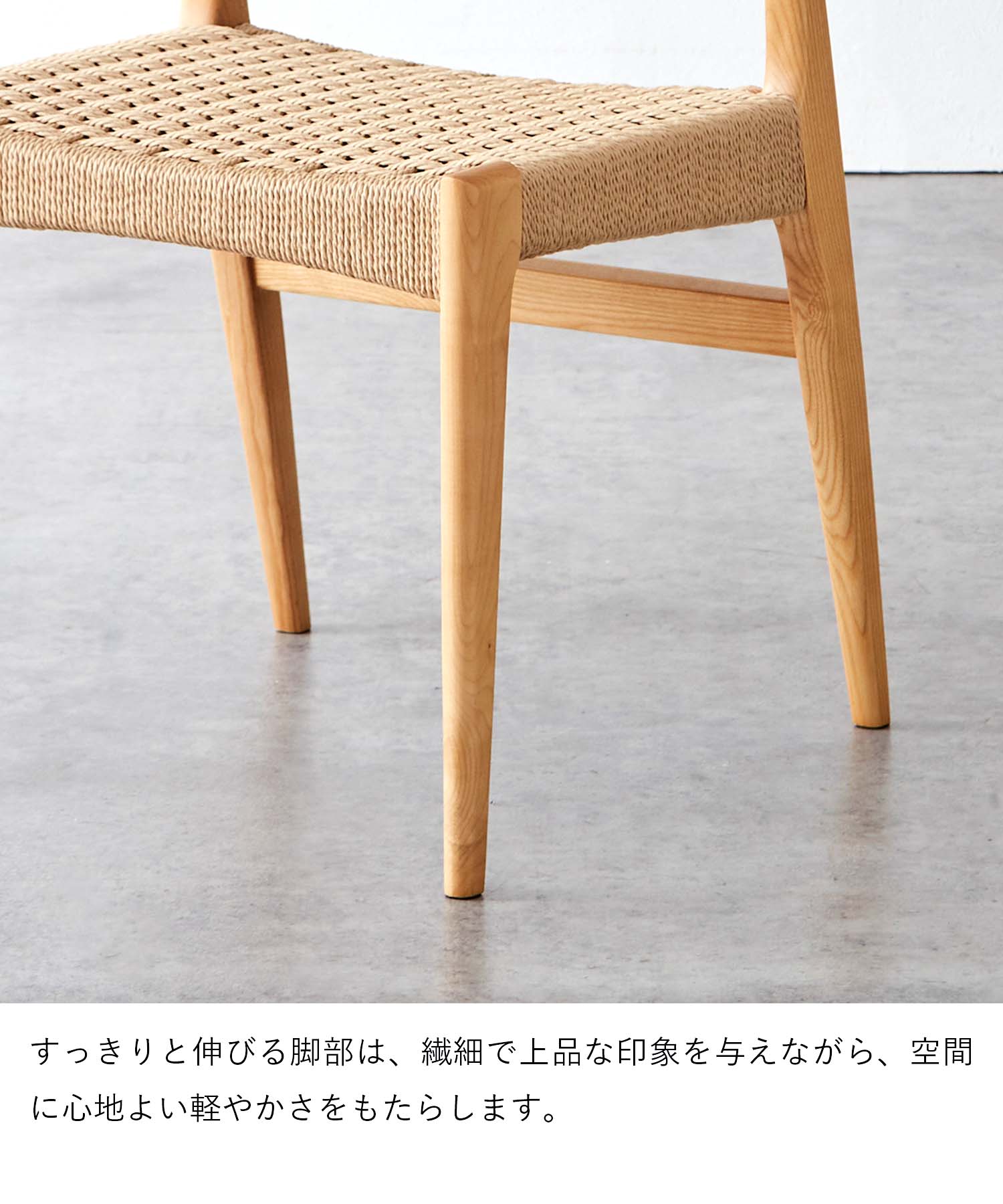 すっきりと伸びる脚部は、繊細で上品な印象を与えながら、空間に心地よい軽やかさをもたらします。