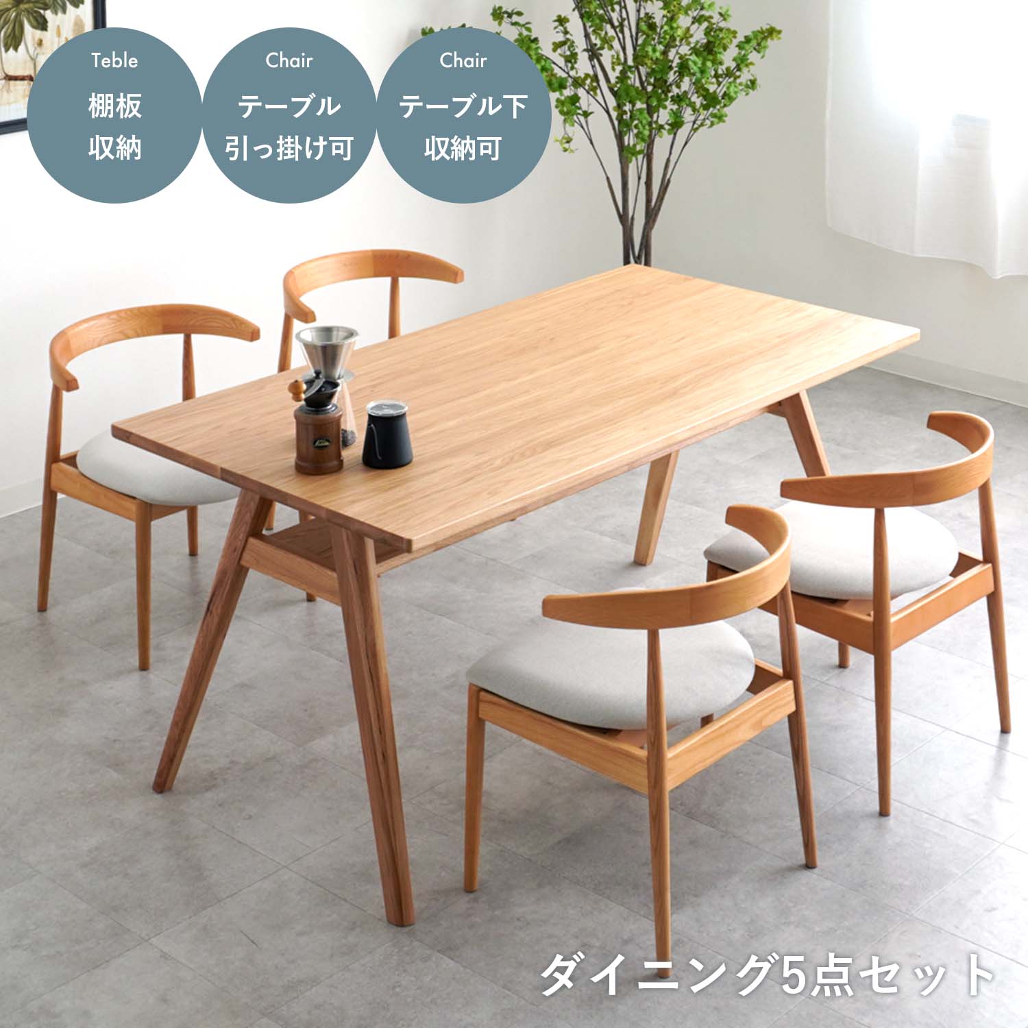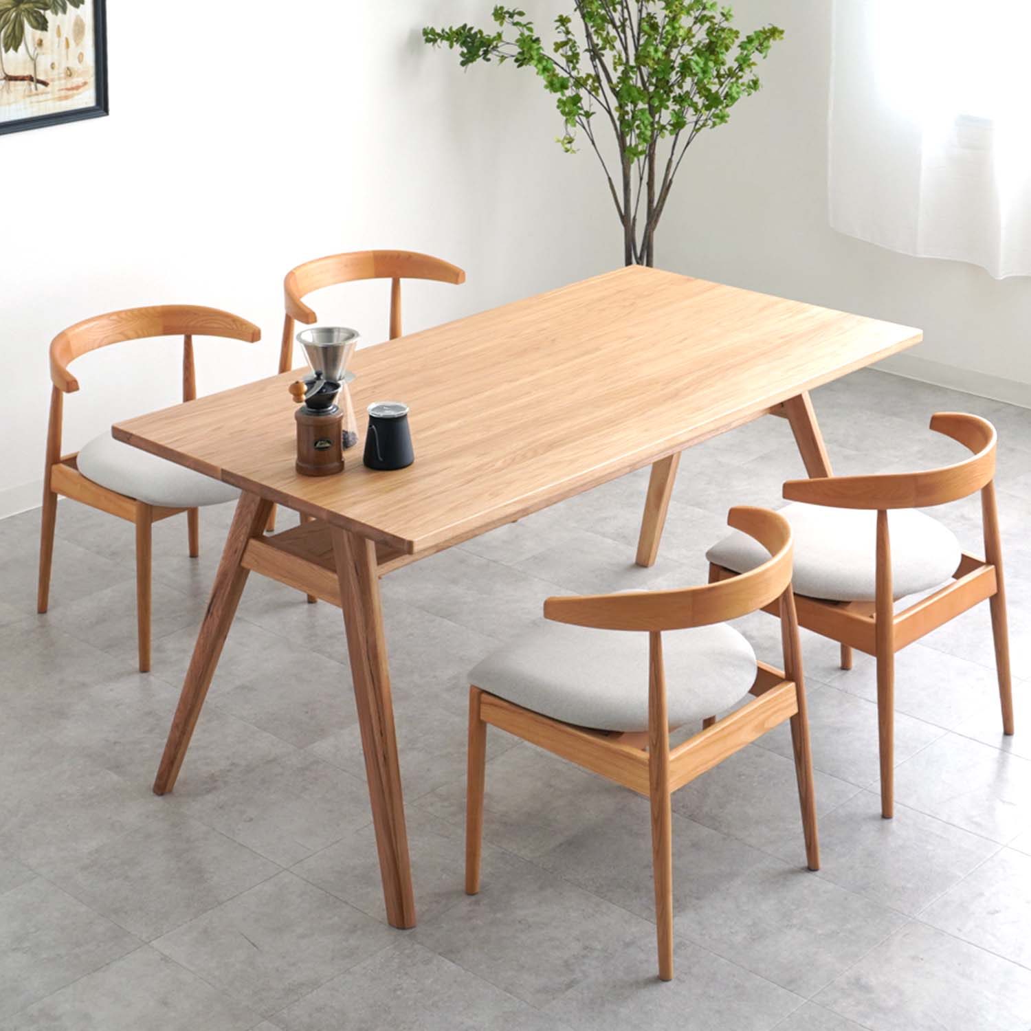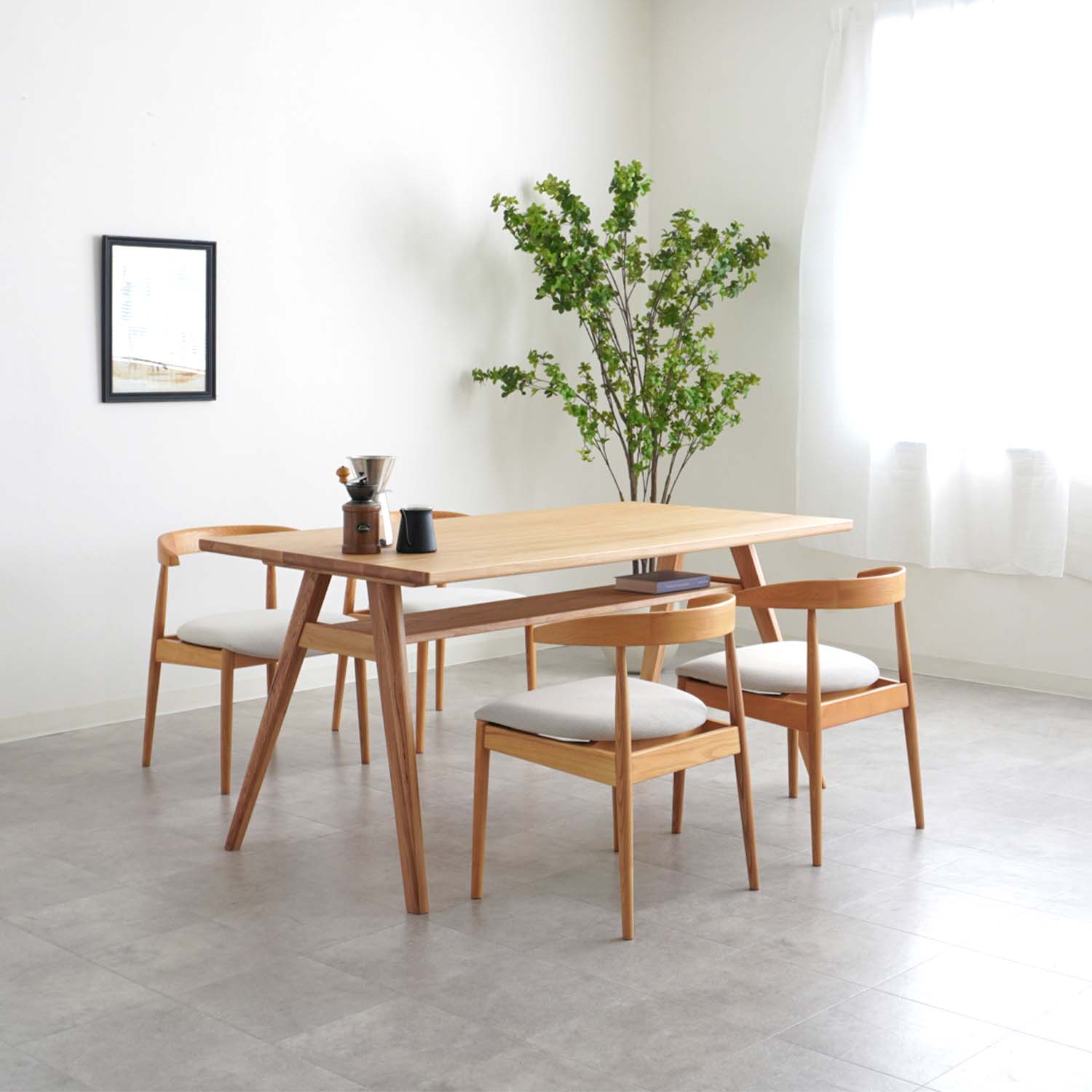 木のぬくもりに包まれた、心地よい食卓をつくるダイニング5点セット。