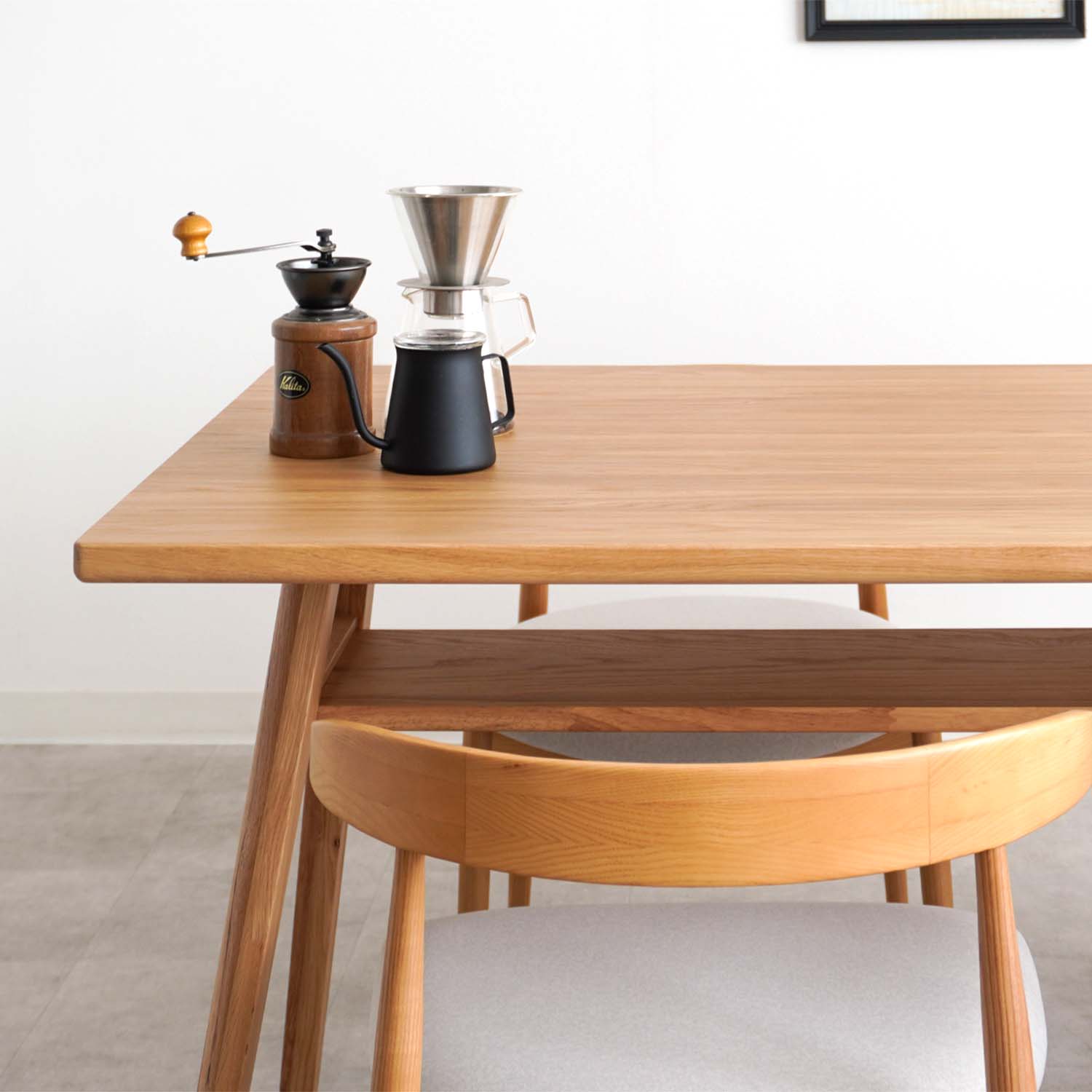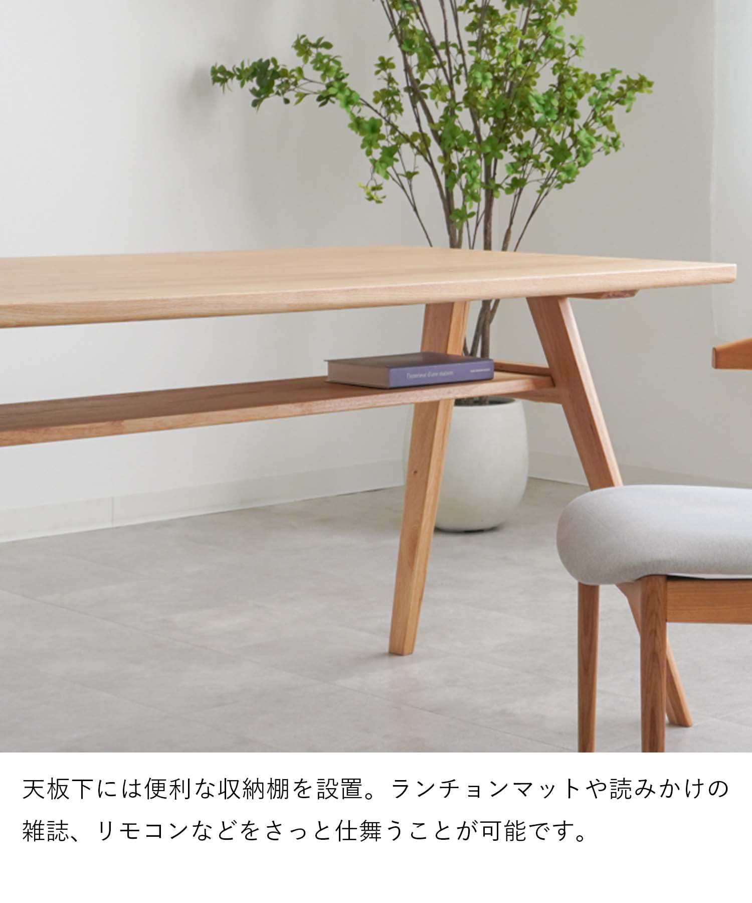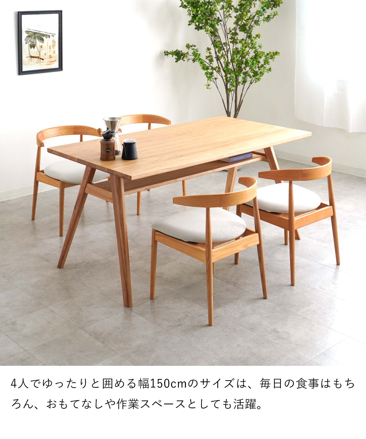 4人でゆったりと囲める幅150cmのサイズは、毎日の食事はもちろん、おもてなしや作業スペースとしても活躍。