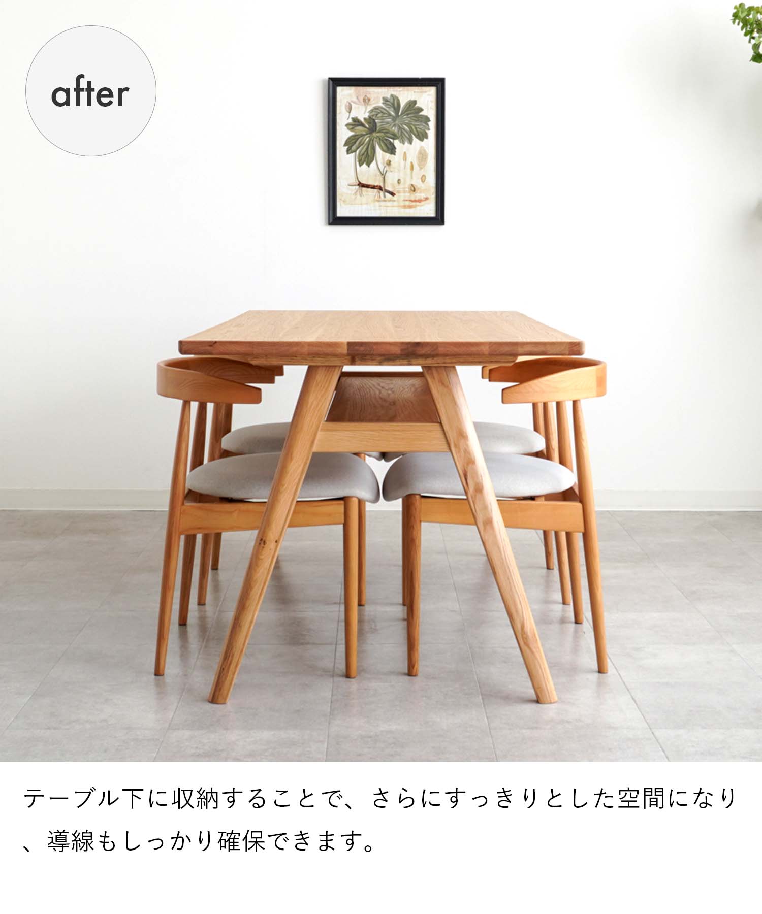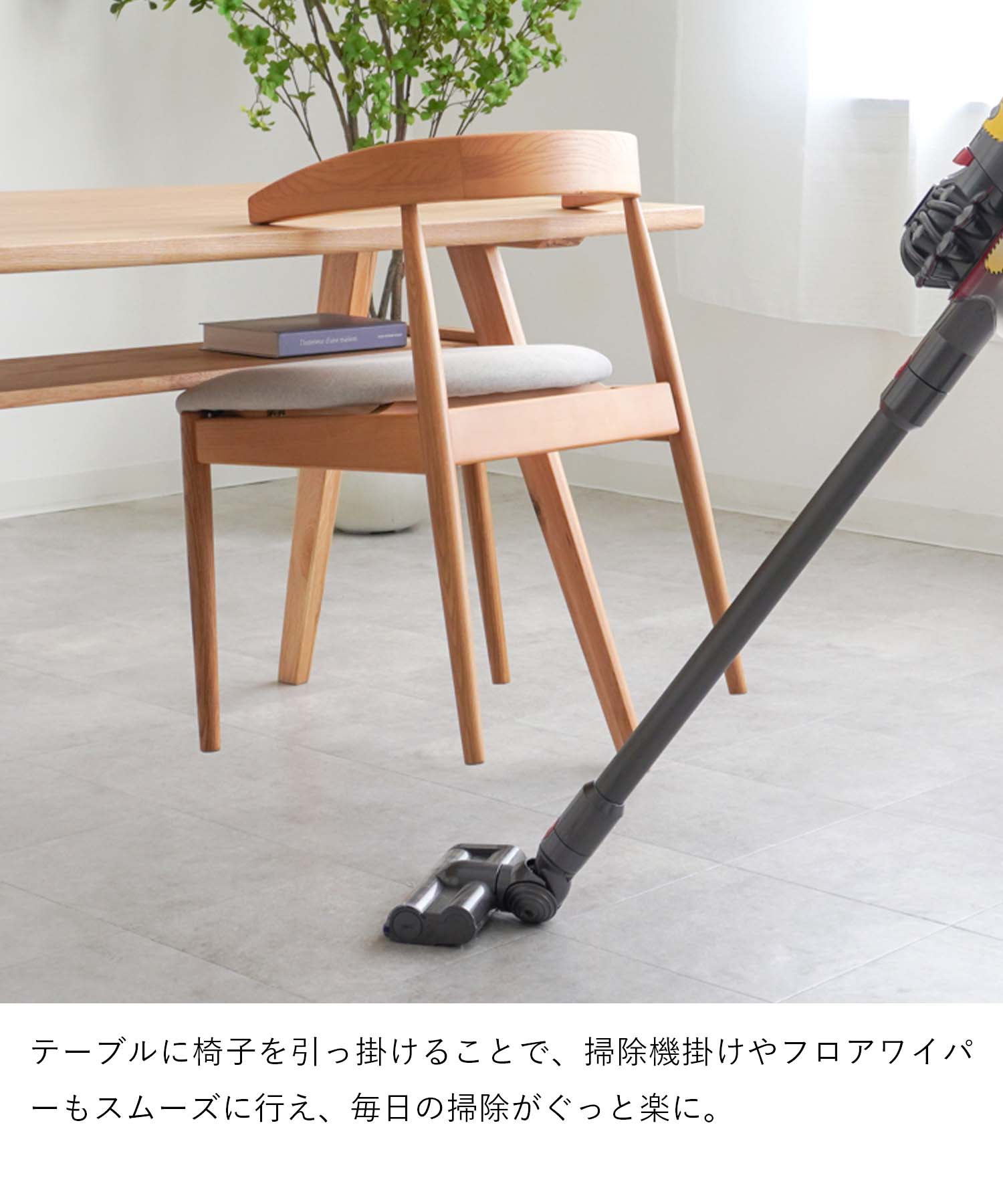 テーブル下に収納することで、さらにすっきりとした空間になり、導線もしっかり確保できます。