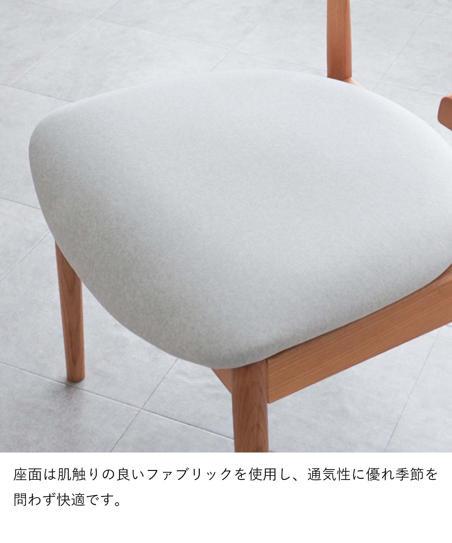 座面は肌触りの良いファブリックを使用し、通気性に優れ季節を問わず快適です。