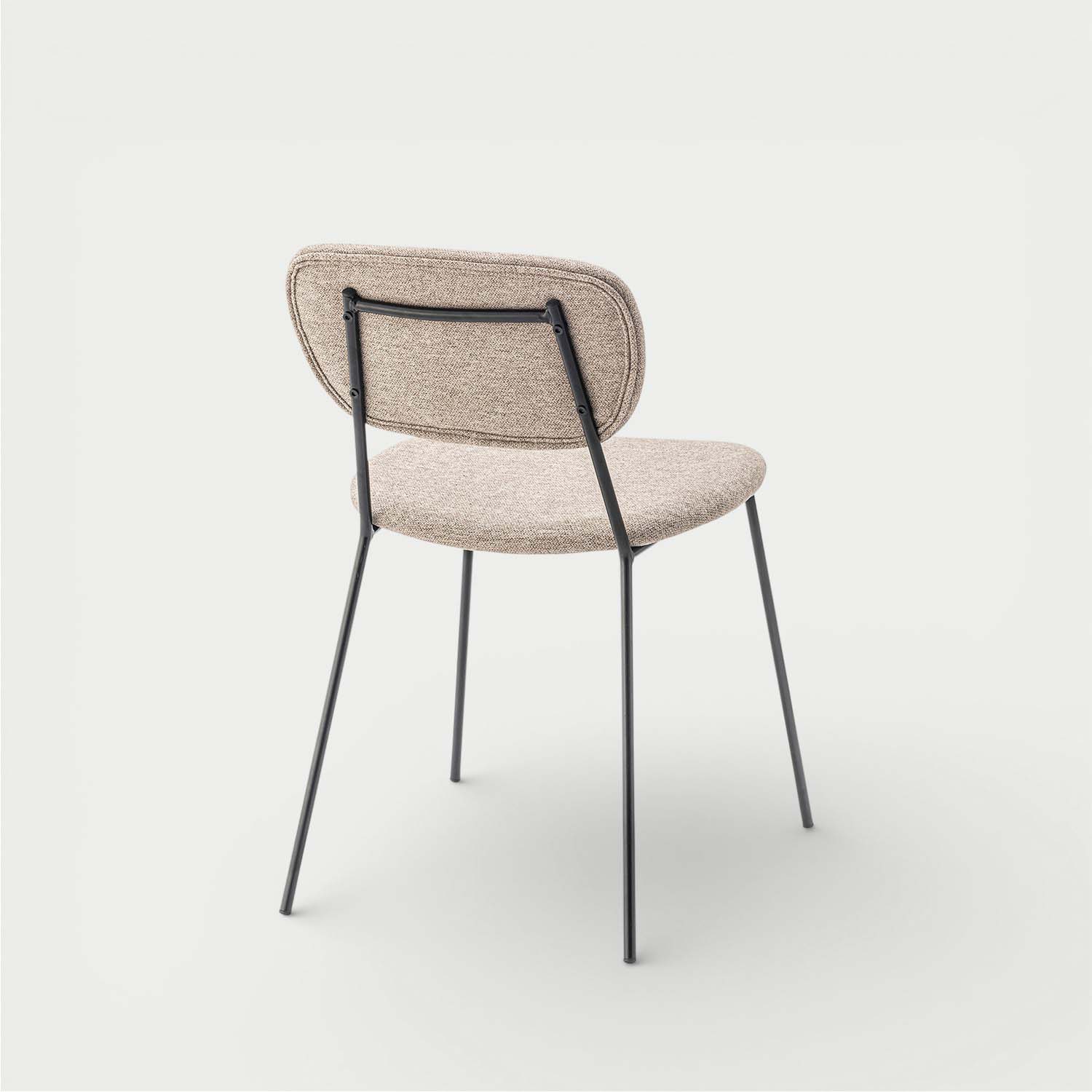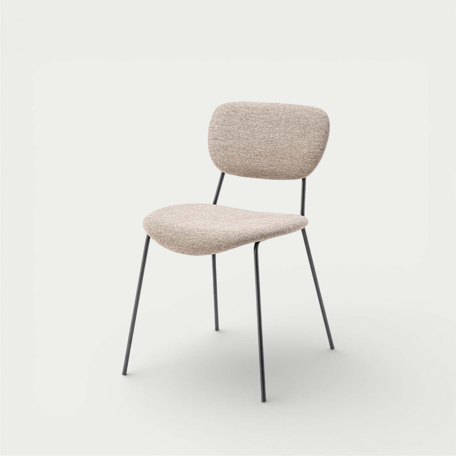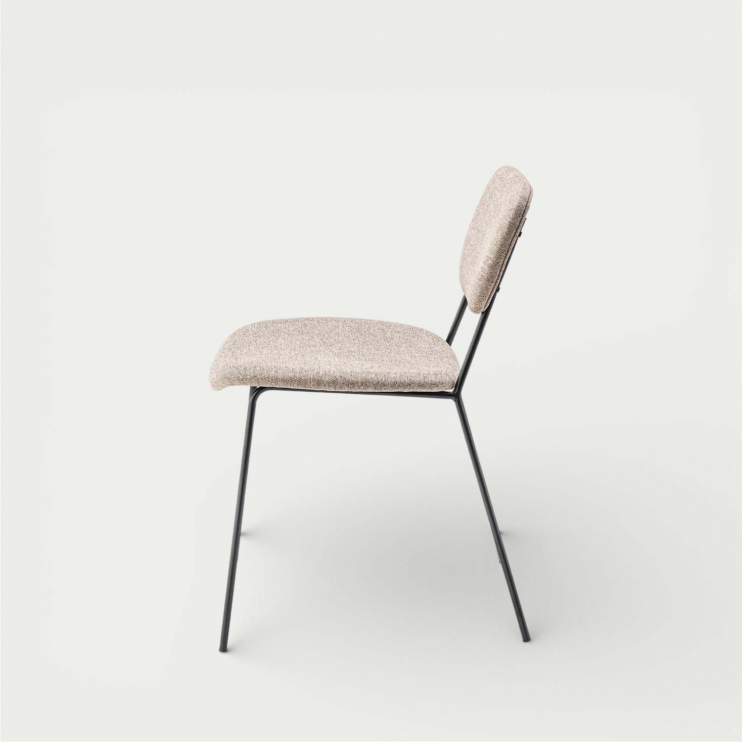 ファブリックのやわらかな表情と、ブラックスチールの直線的な美しさを組み合わせたダイニングチェア。