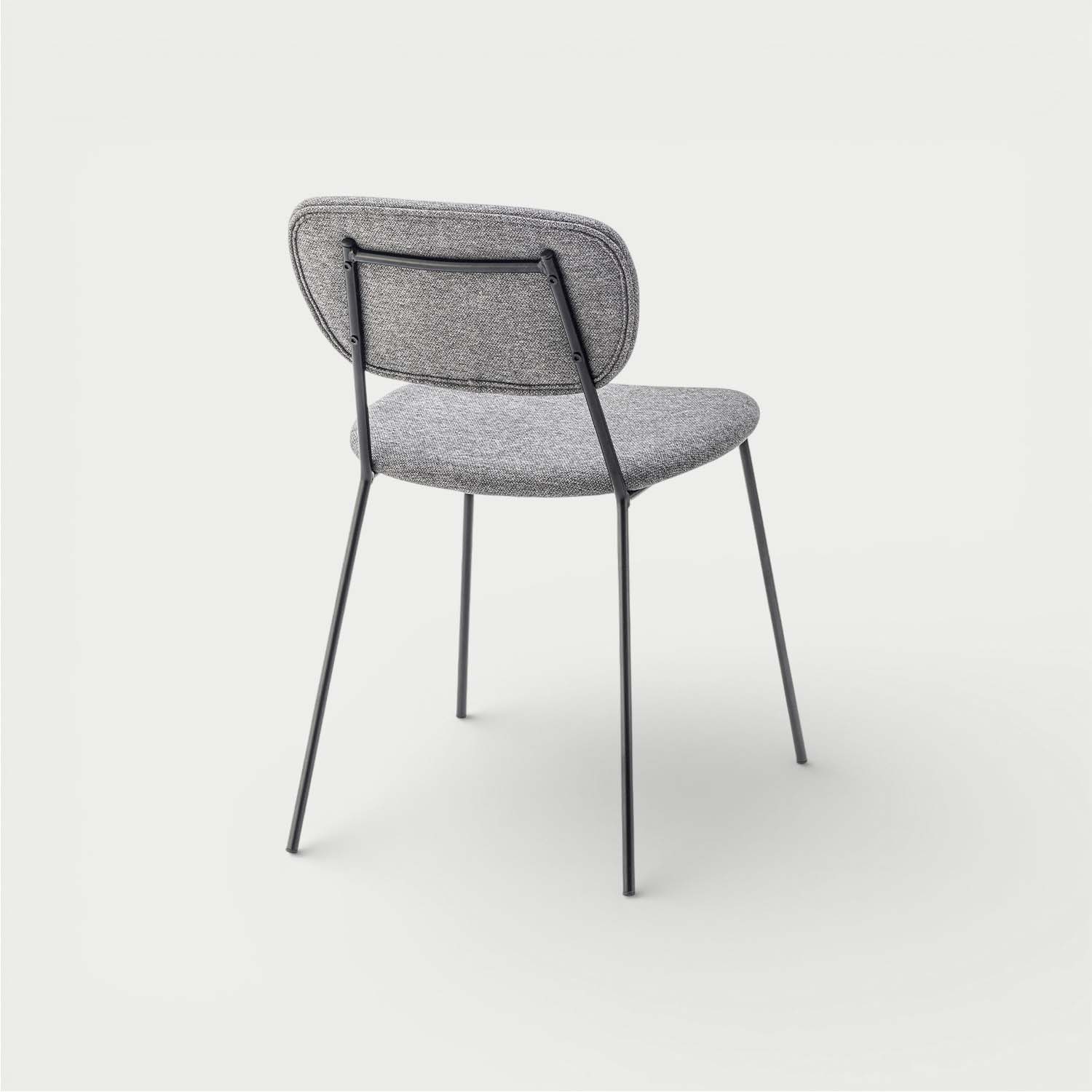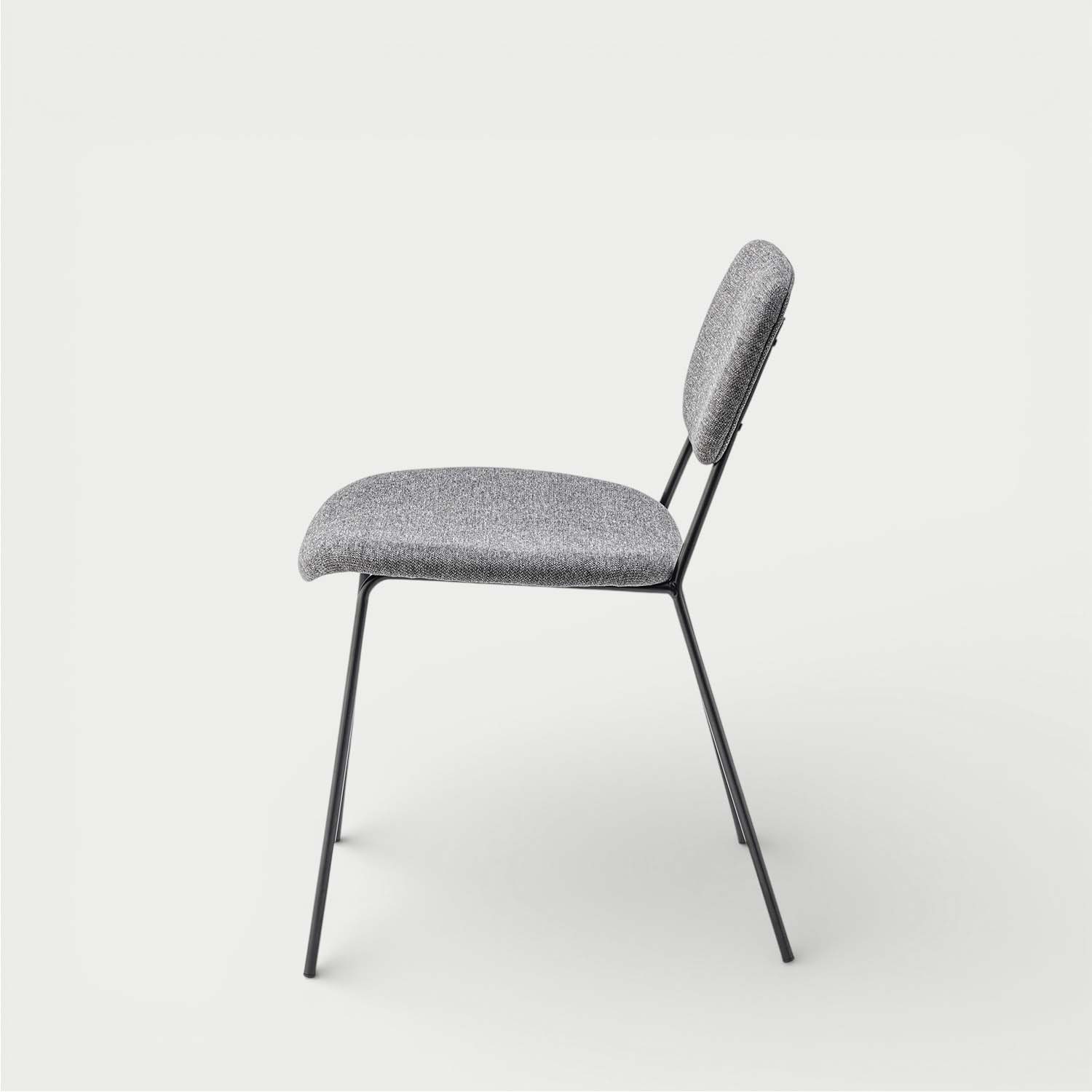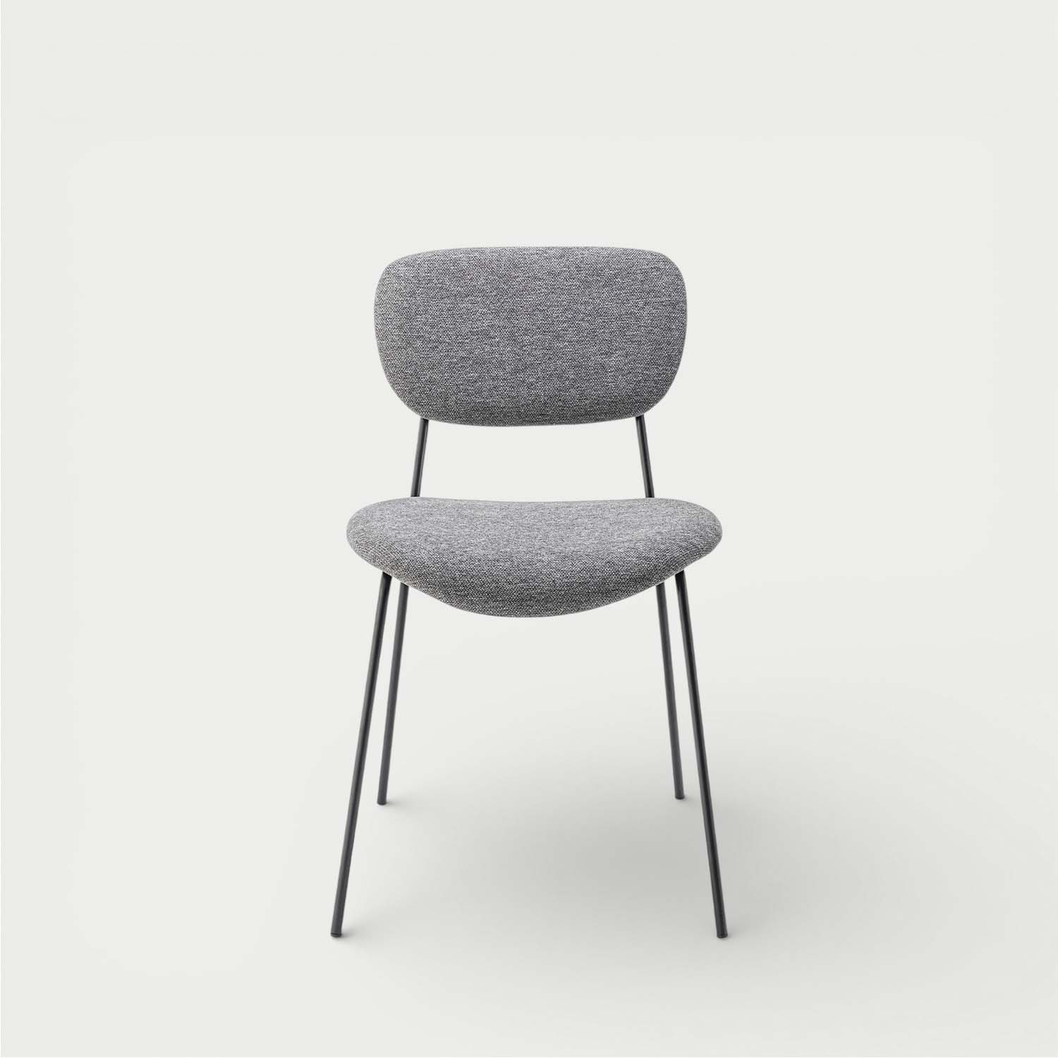 ファブリックのやわらかな表情と、ブラックスチールの直線的な美しさを組み合わせたダイニングチェア。