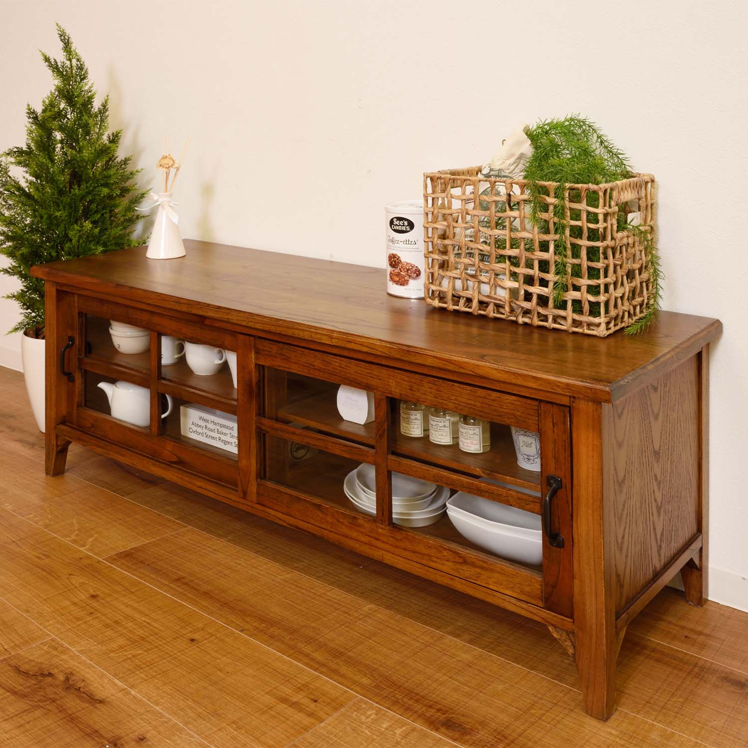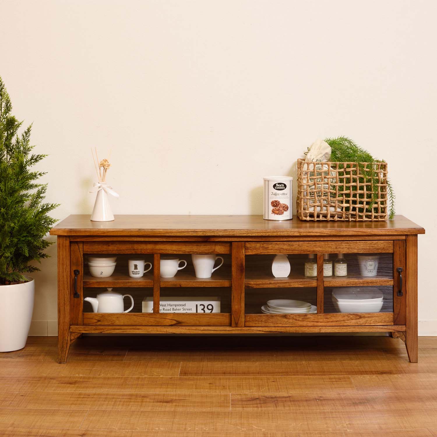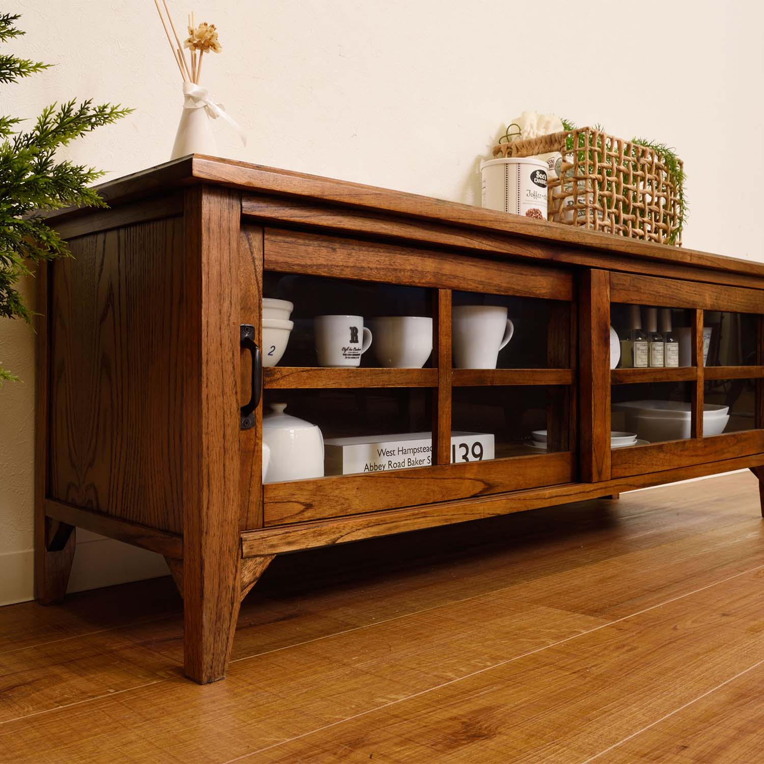 テレビ台だけでなく、食器棚や収納キャビネットとしても活躍。暮らしに合わせて柔軟に使えます。