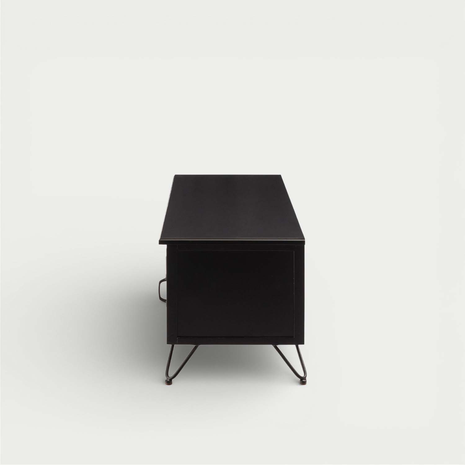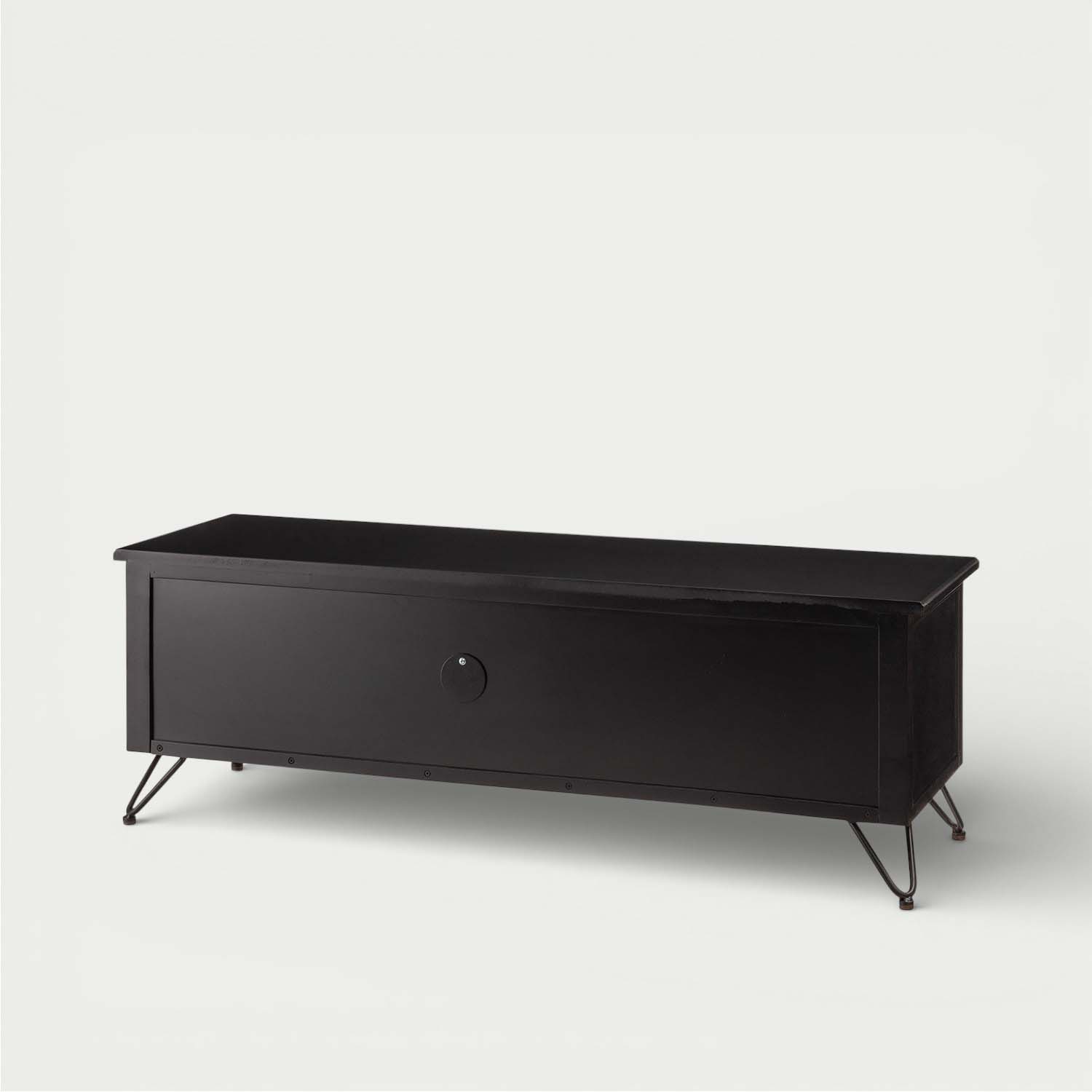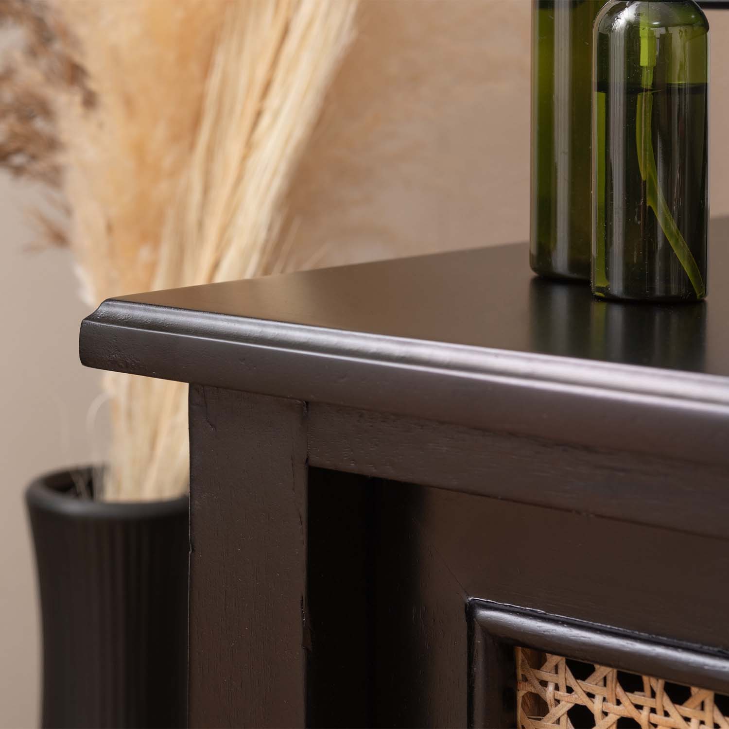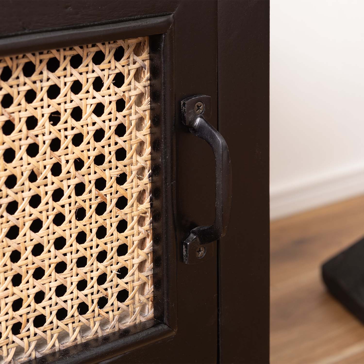 マットブラックの木部と天然ラタンを組み合わせ、重厚感と抜け感を両立した洗練されたテレビボードです。