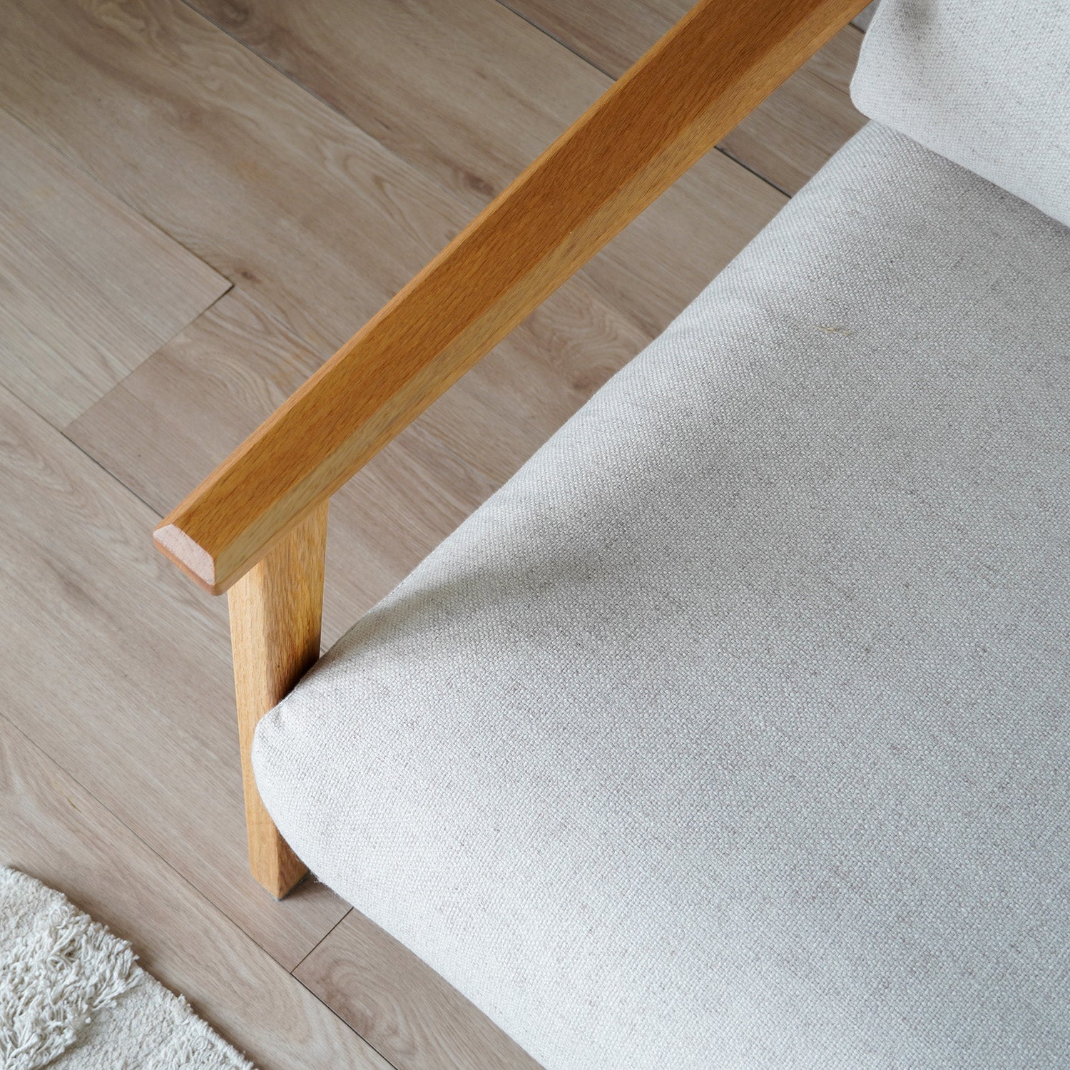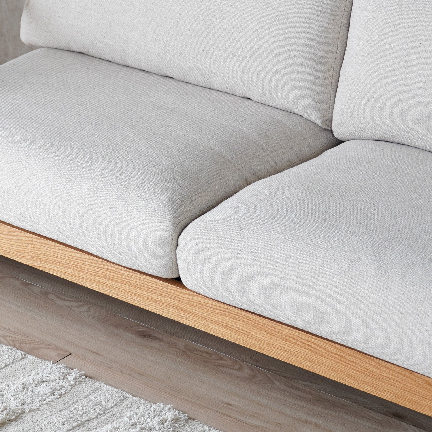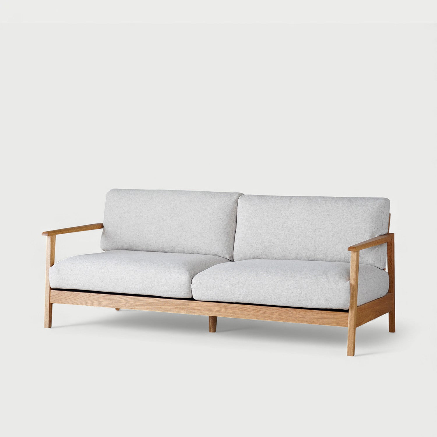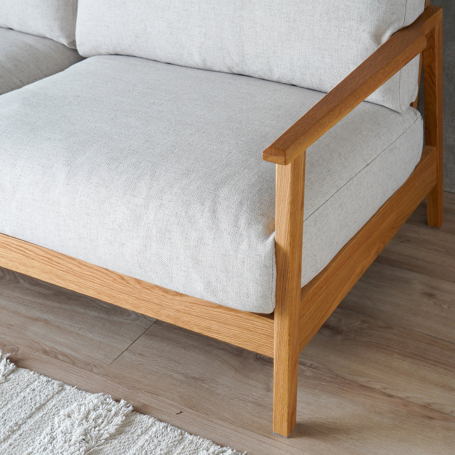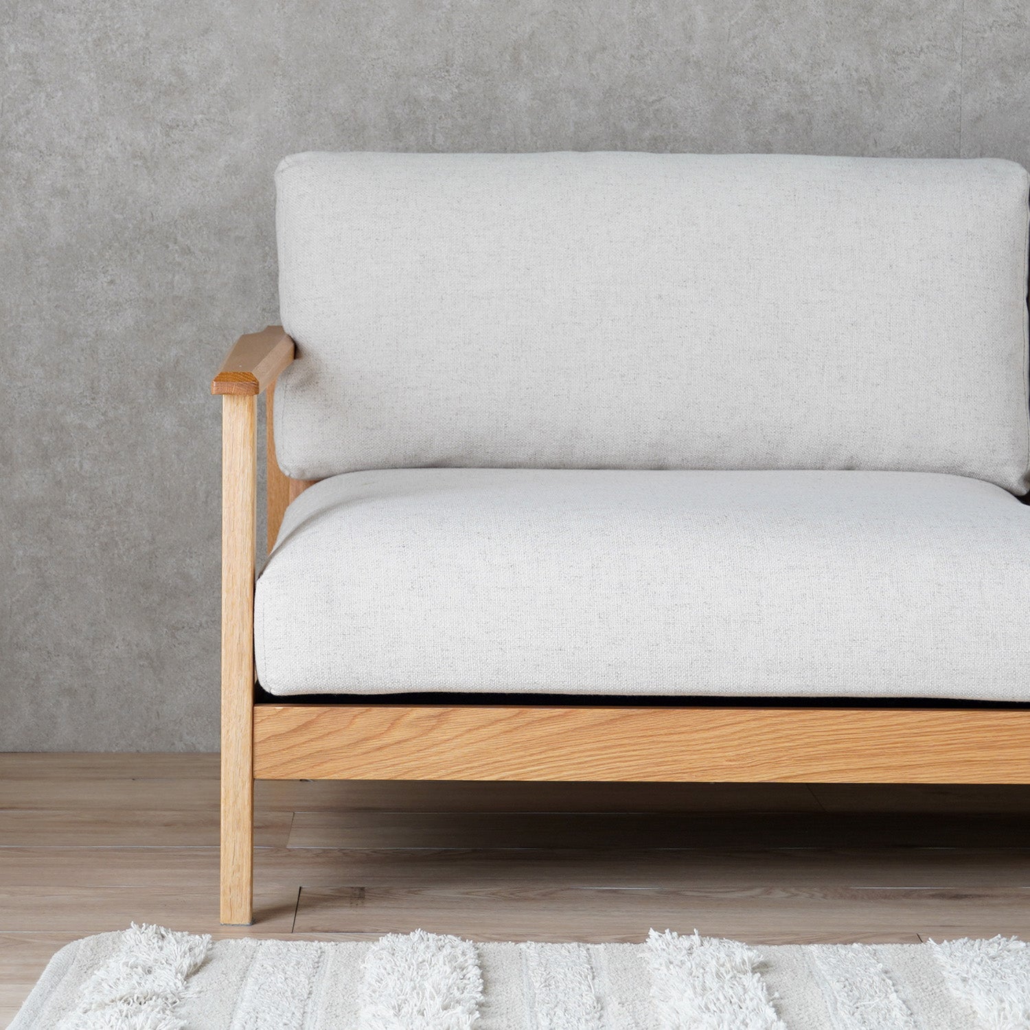オーク材の質感を生かした肘フレームが、ソファ全体に上質なアクセントをプラスします。