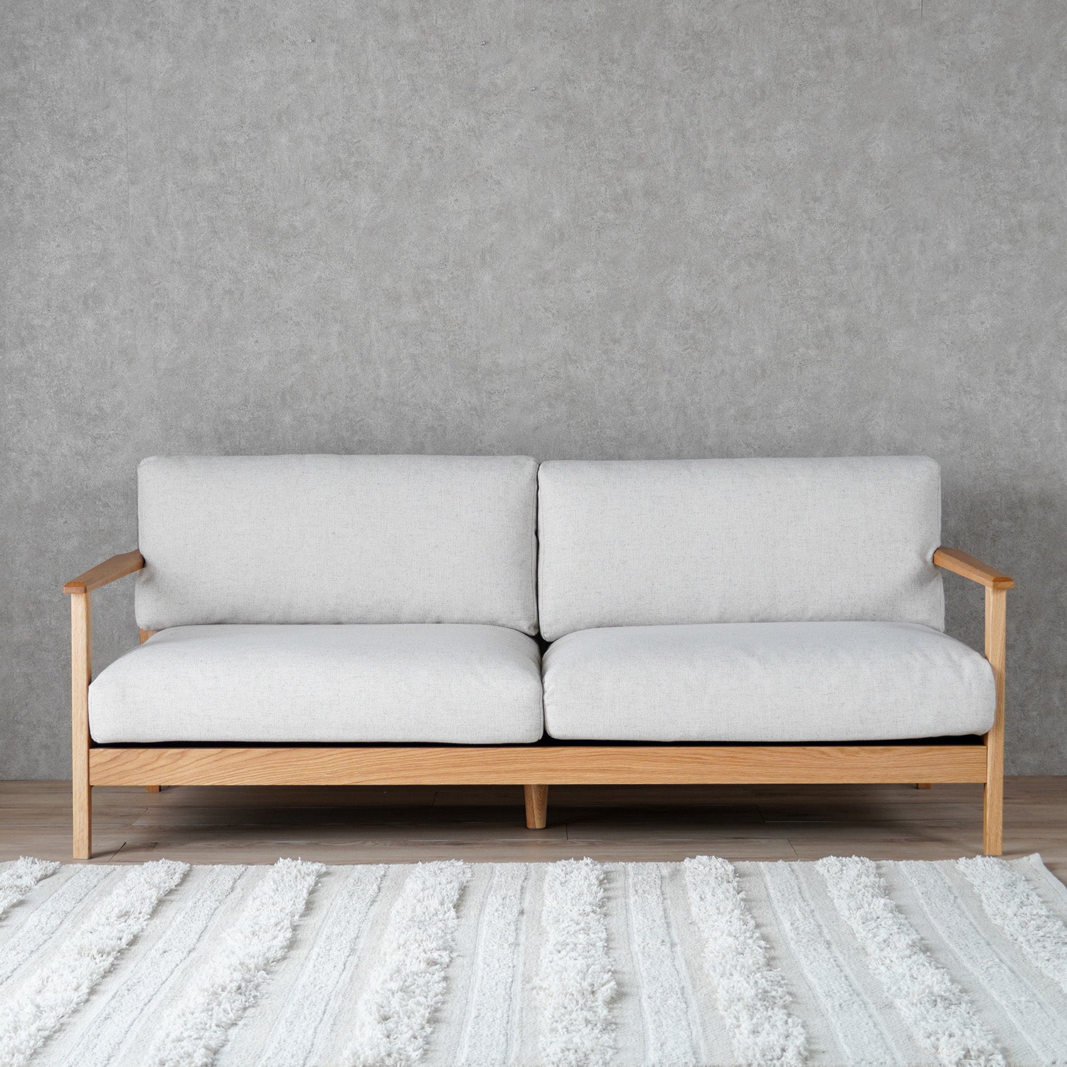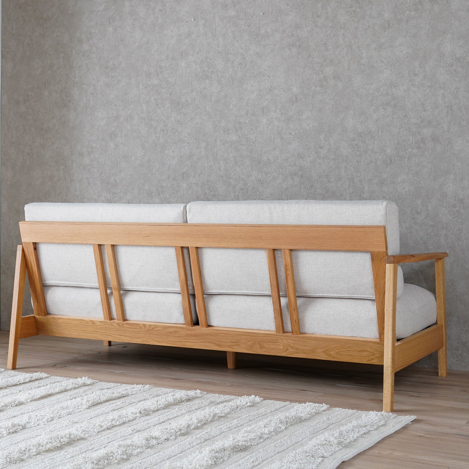 オーク材フレームの上質な存在感の3人掛けソファ