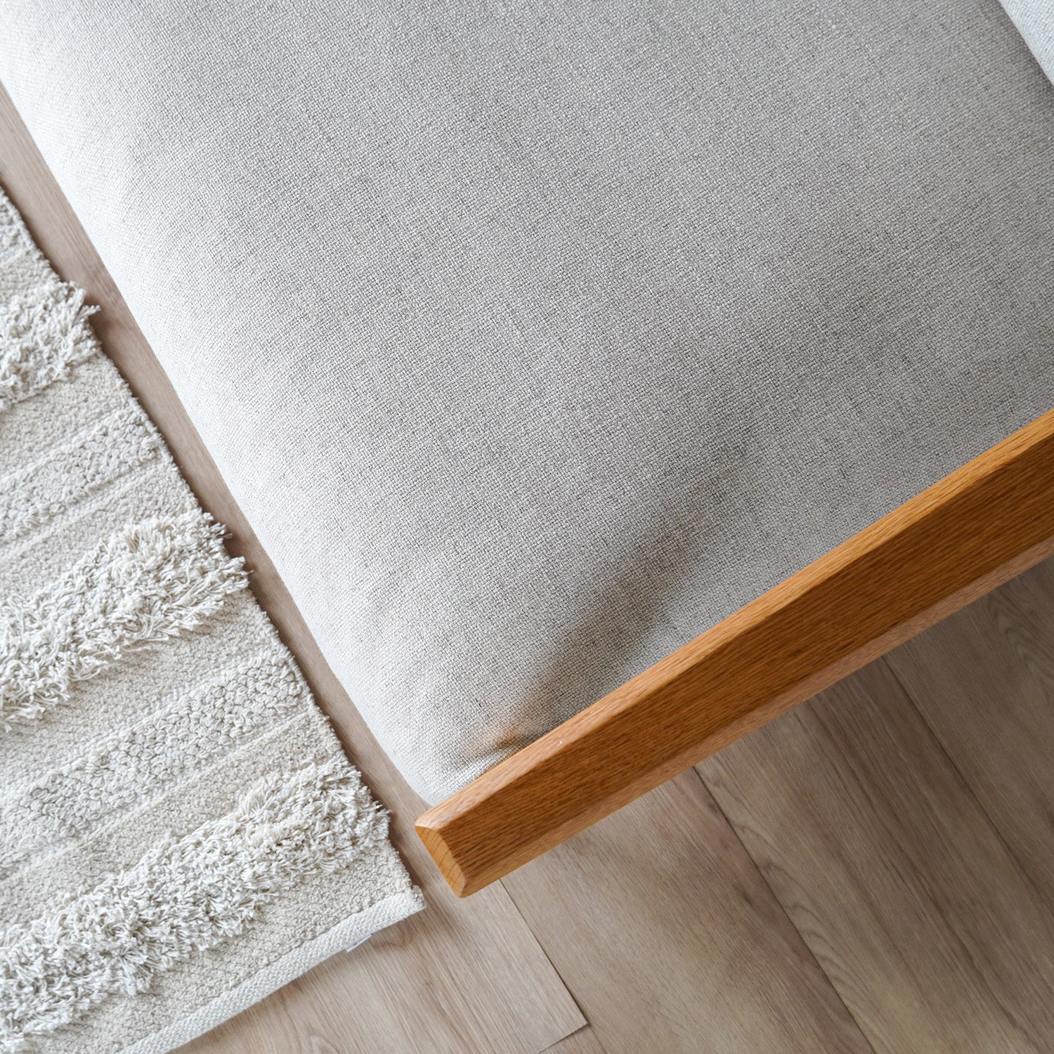 無駄を削ぎ落としたミニマルな北欧デザインに、オーク材フレームの上質な存在感をプラス。