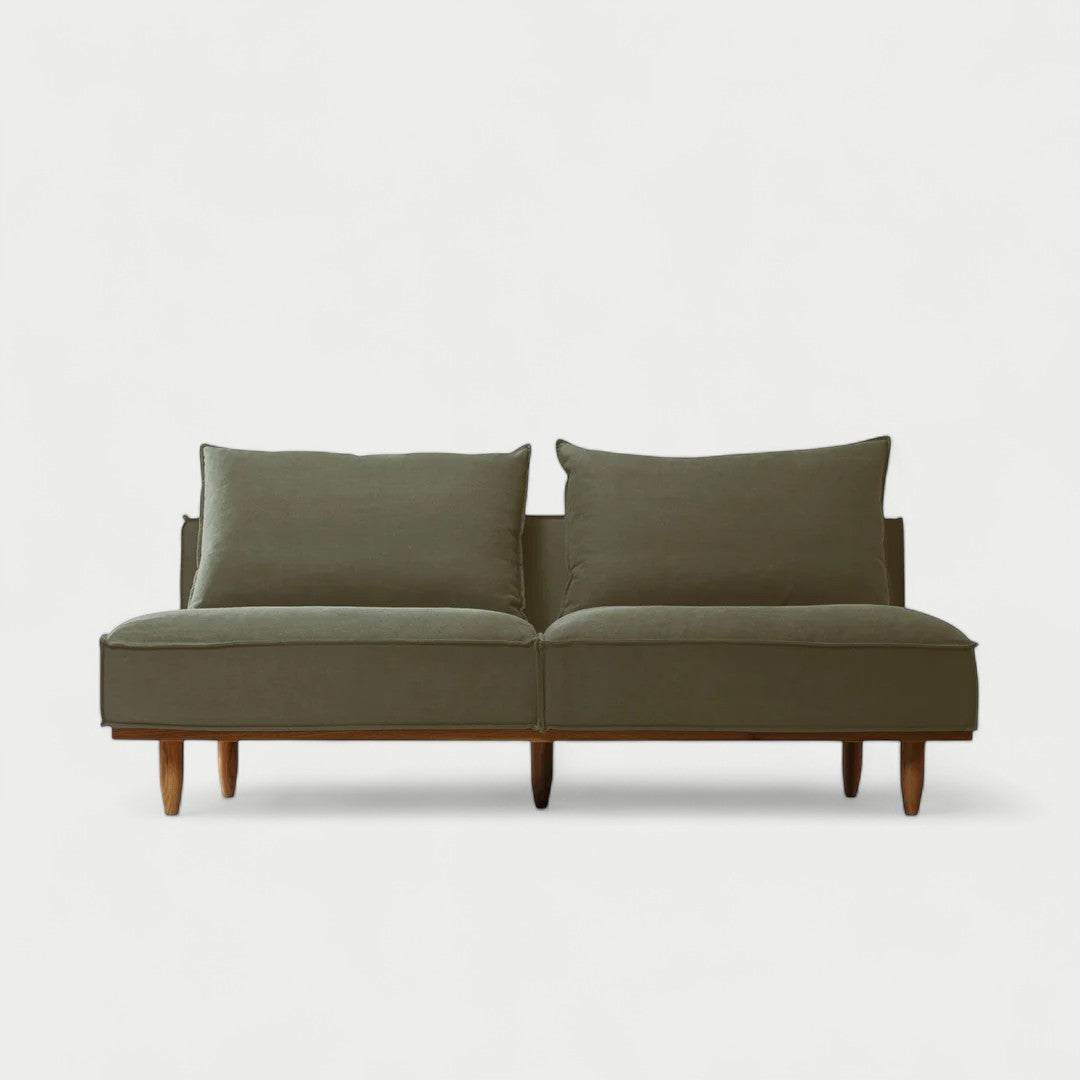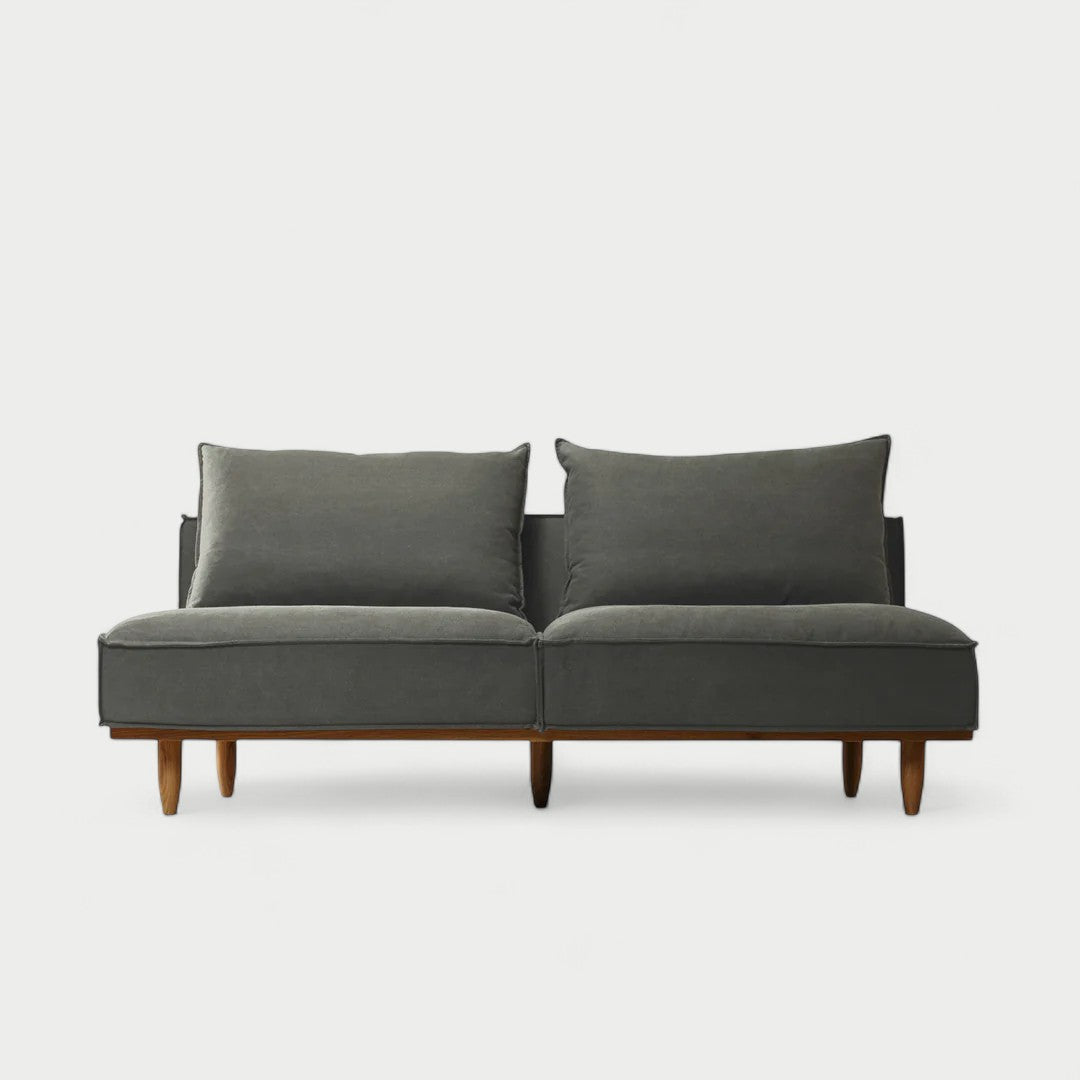 座面の奥行きはたっぷり75cm。背クッションを外せば仰向けに寝転ぶこともでき、座る・横になる・あぐらをかくなど、ライフスタイルに合わせた自由な姿勢でくつろげます。