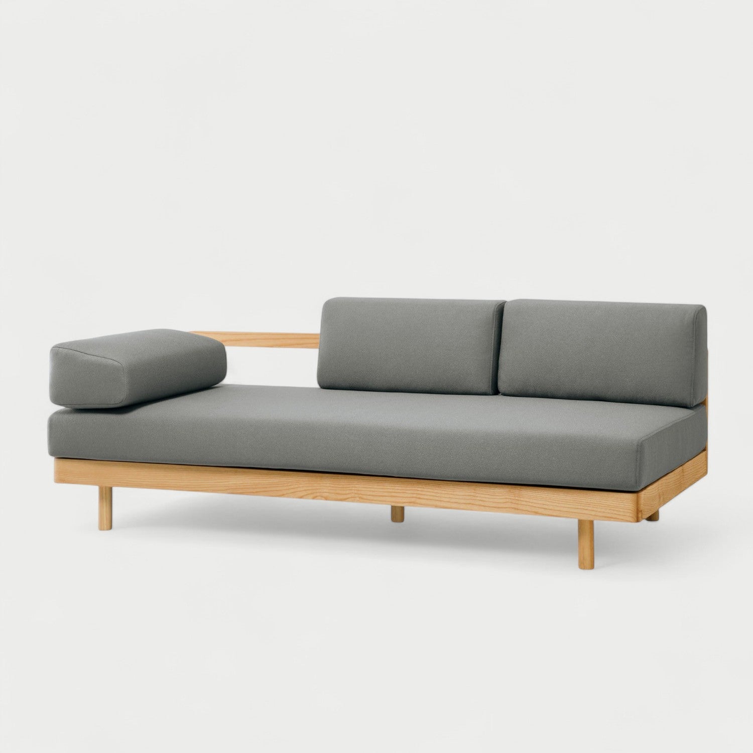 肘掛けのないフラットな形状と幅182cmの広々とした座面で、足を伸ばしてくつろいだり、お昼寝したりと自由自在。