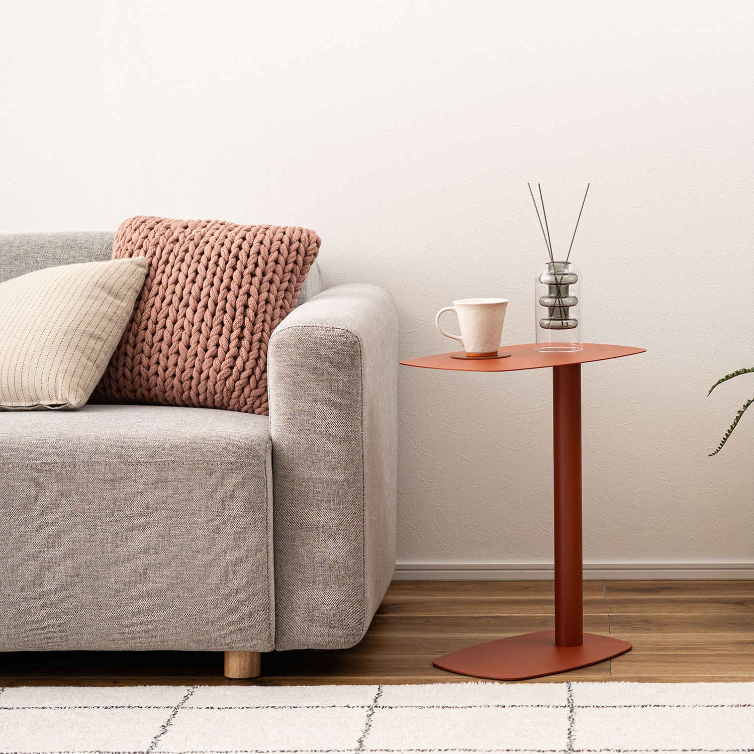 アシンメトリーなフォルムが目を引く、洗練されたサイドテーブル。