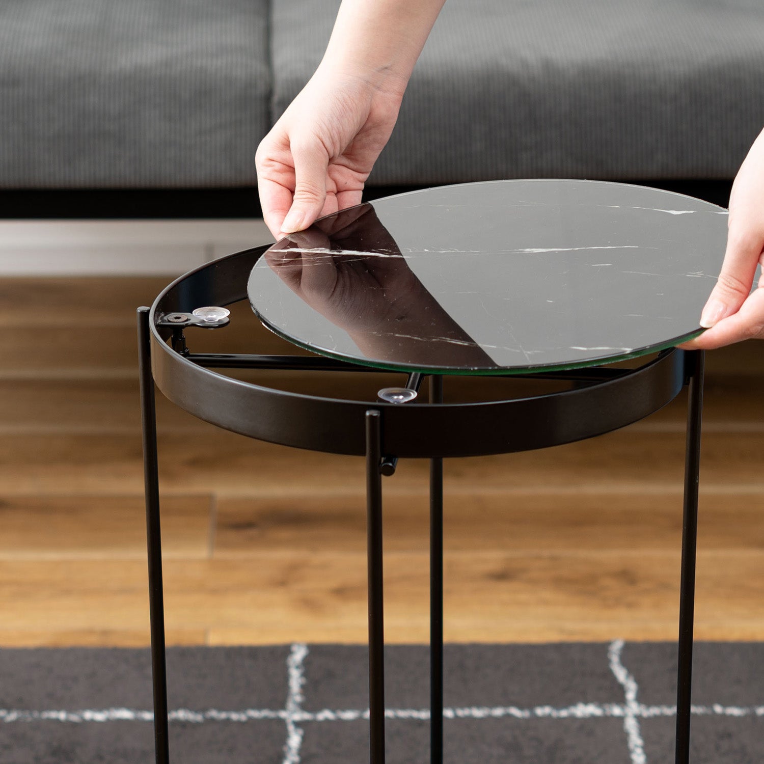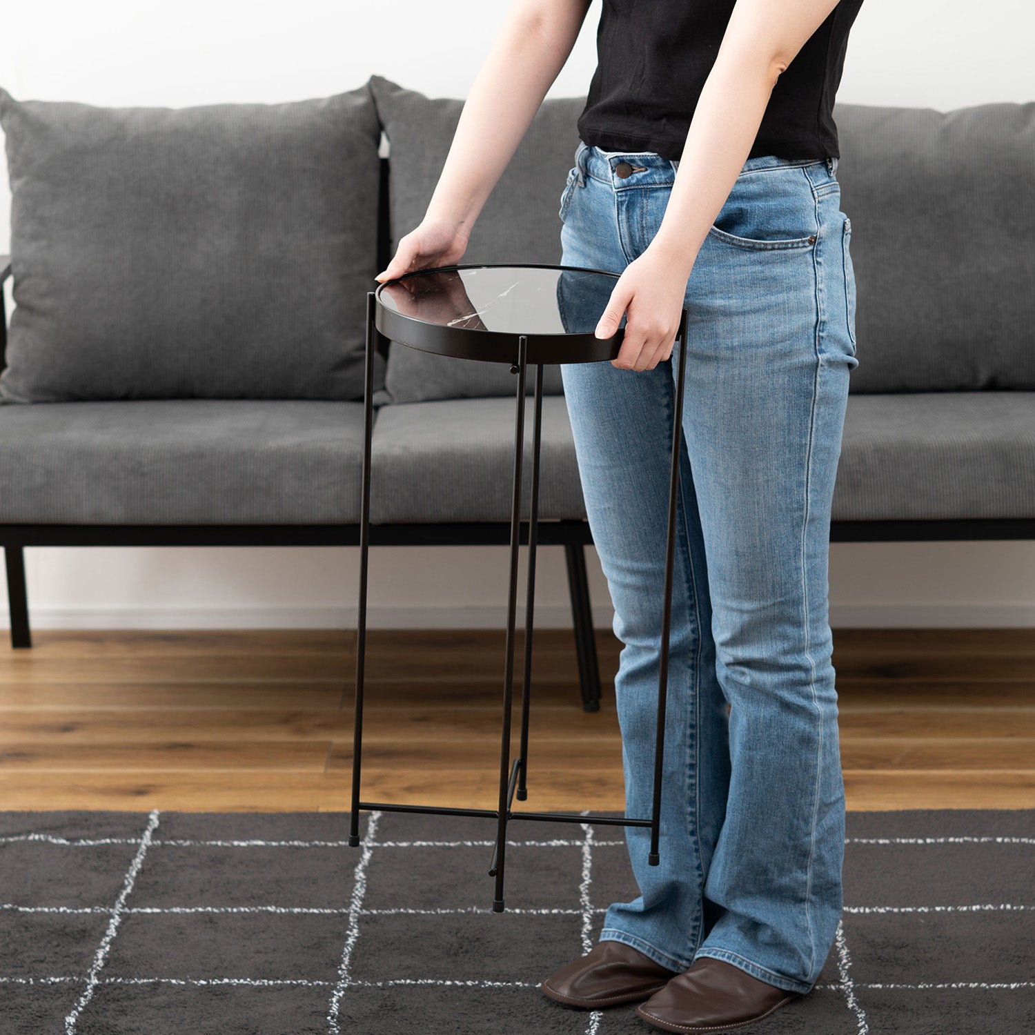 重厚感のある石目調天板。吸盤付きでズレを防ぎ、安定感も抜群。