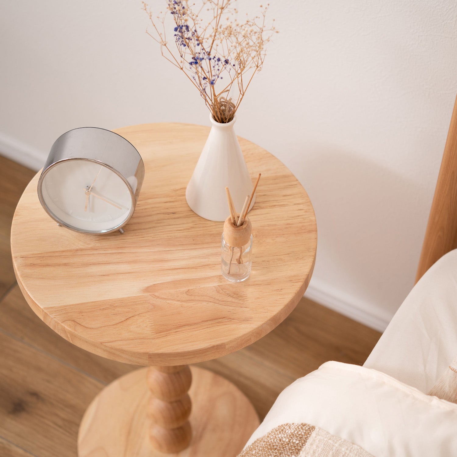 ベッドやソファ周りにちょうど良いサイズで、ナイトテーブルやリビングのサイドテーブルとして幅広く活躍します。
