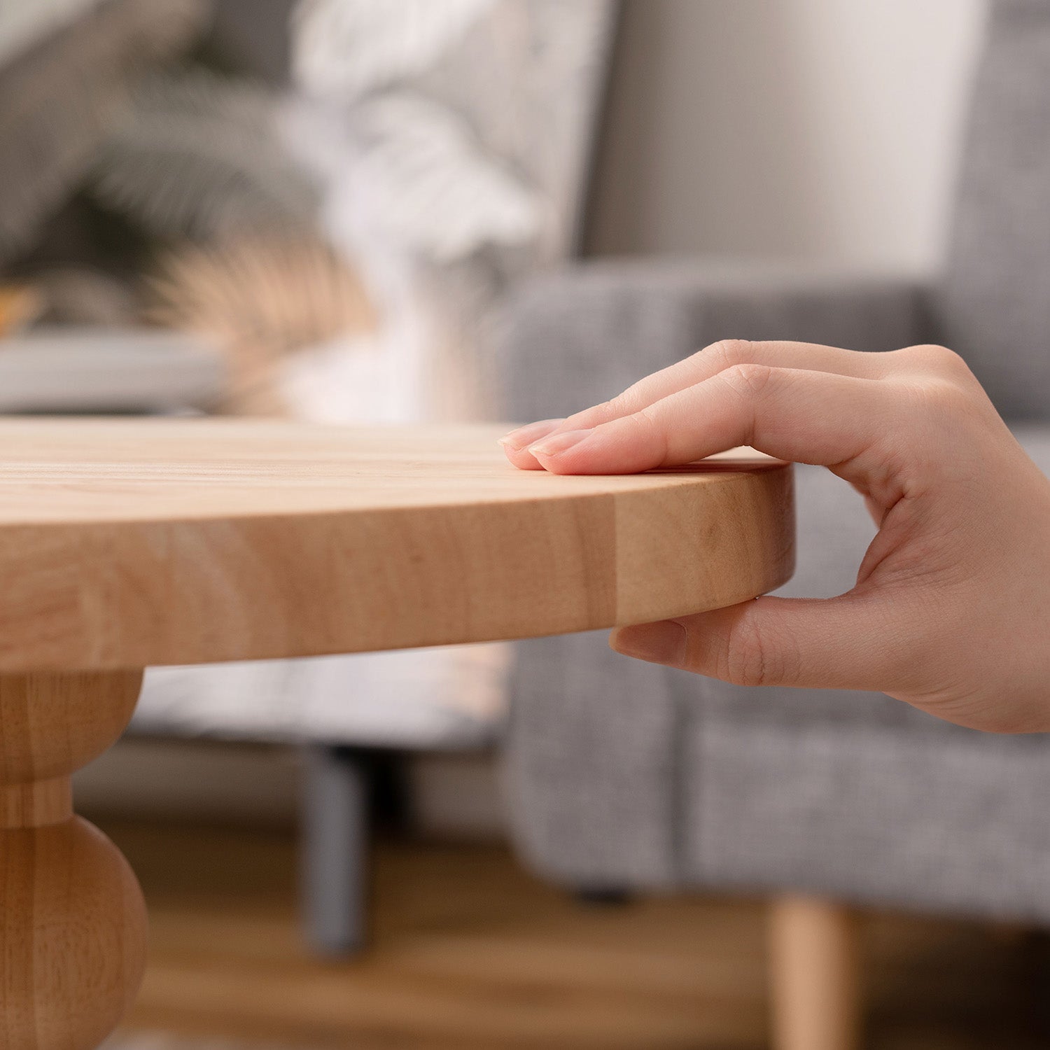 手触りのよい天然木の天板は、照明や小物置きにぴったり。