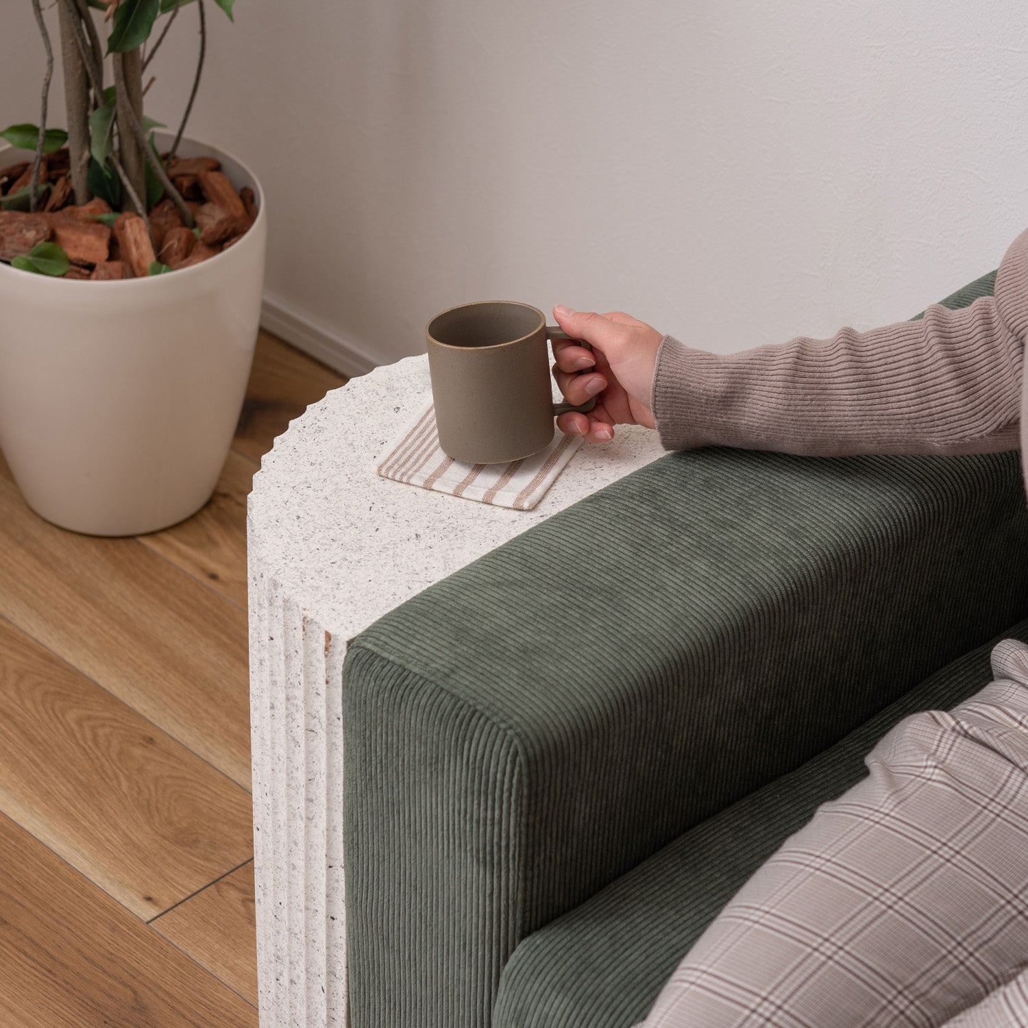 直線面がソファの肘掛けにぴたっと寄り添います。