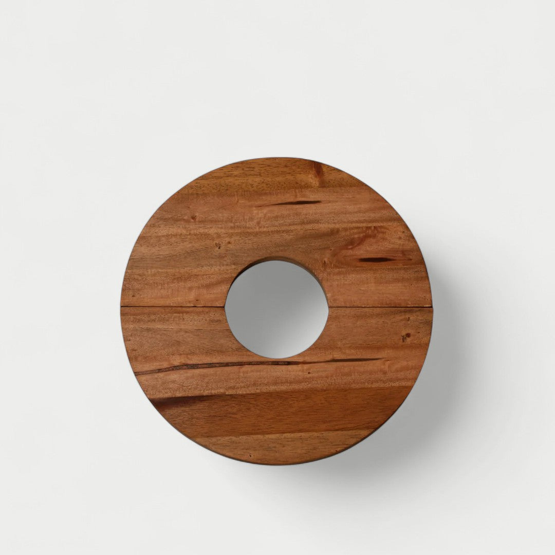 落ち着いた茶褐色のマホガニー材は、グリーンとの相性も抜群。植物の色合いを引き立て、ナチュラルな空間にすっと溶け込みます。