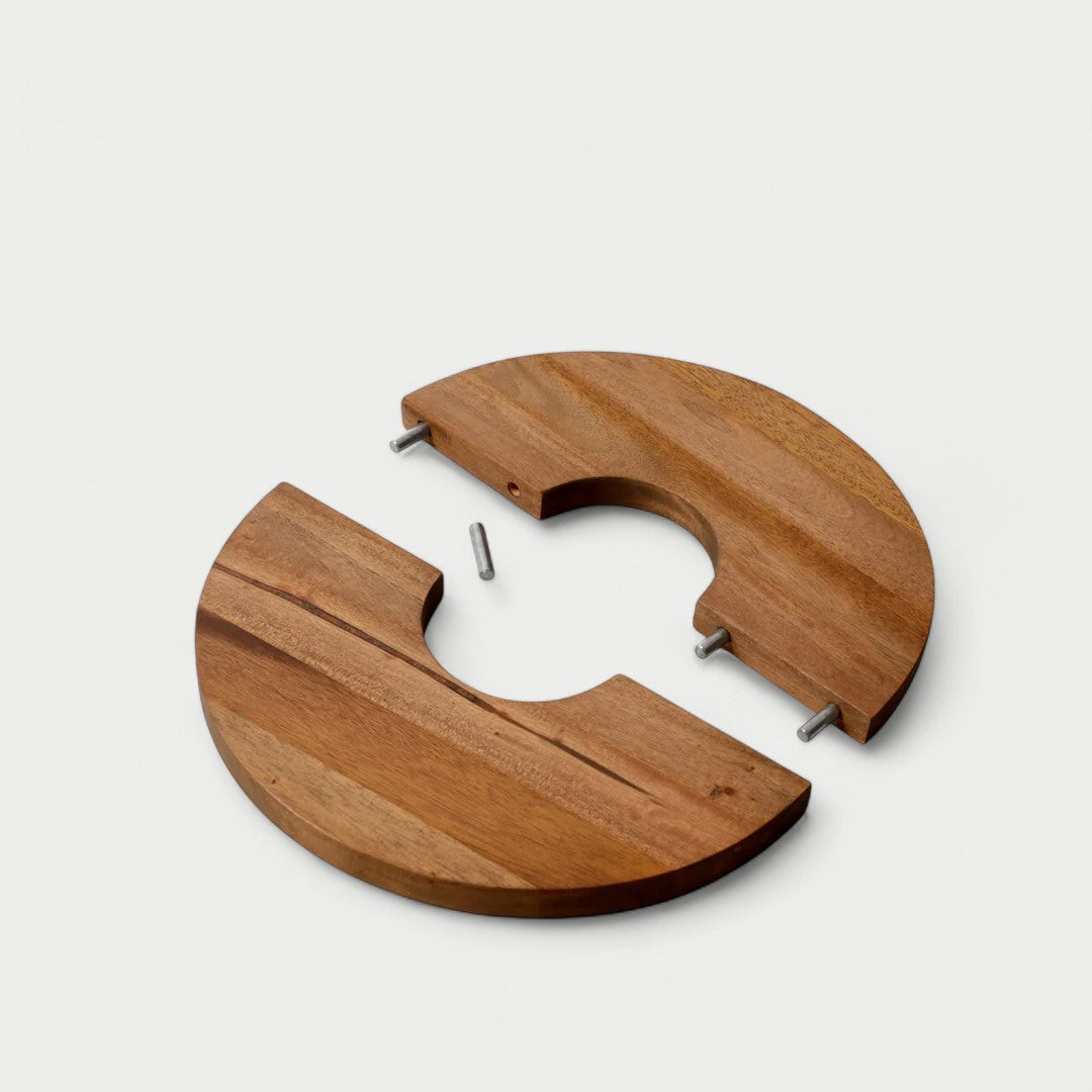 2枚の板を挟んで使う構造だから、片付けや移動もラク。使わないときはさっと外して収納でき、暮らしに合わせて柔軟に使えます。